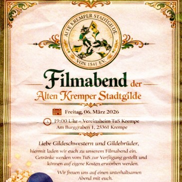 Der Ältermann ist Vorsitzender des erweiterten Vorstandes und zugleich Repräsentant der Alten Kremper Stadtgilde. Dieses Amt wird derzeit von Kai Borchert ausgeübt. Seine Amtszeit endet turnusgemäß Ende des Jahres 2026. In der letzten Sitzung des erweiterten Vorstandes hat Kai Borchert erklärt, für eine weitere Amtszeit nicht zur Verfügung zu stehen. Damit wird am Abrechnungstag (2. … Mehr Neuwahl des Ältermanns im Jahr 2026