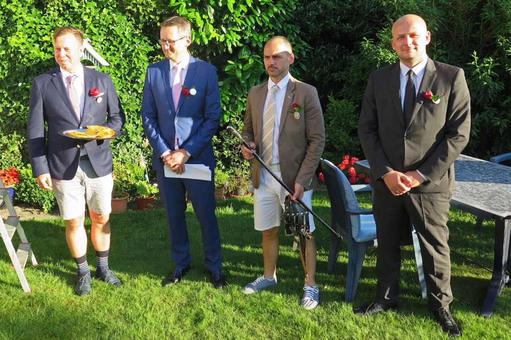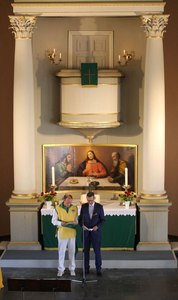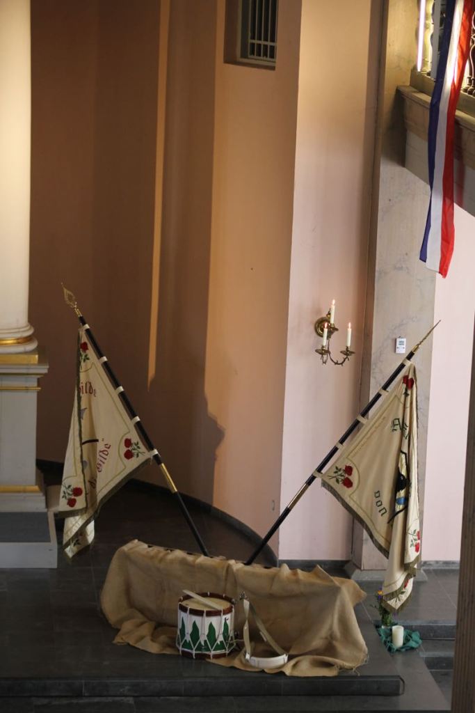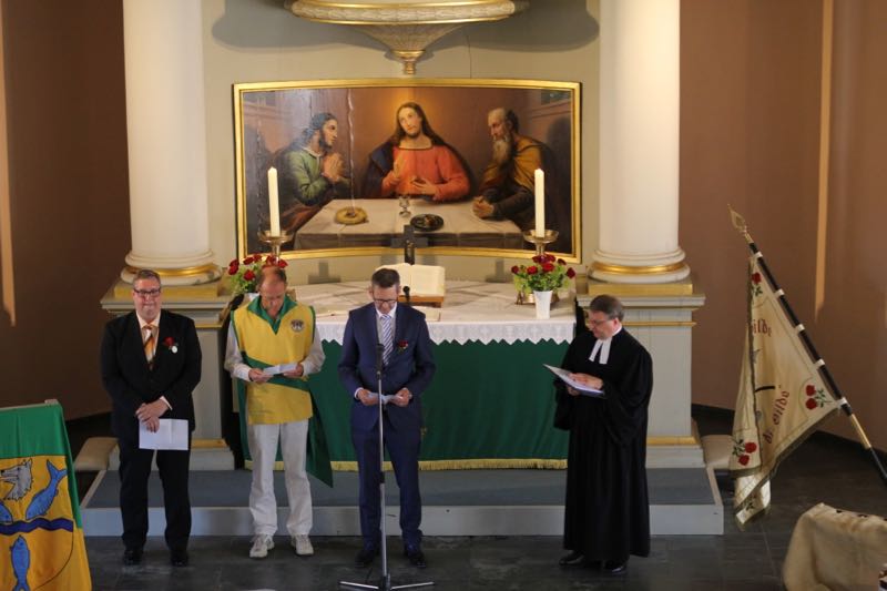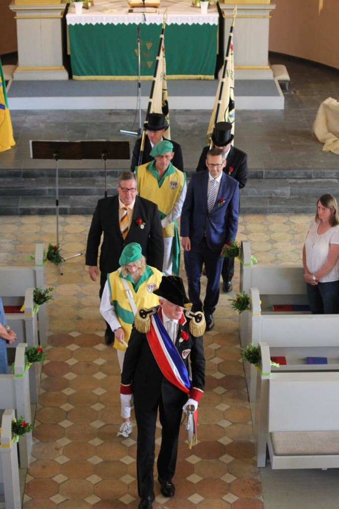 Am Sonntag morgen fand wieder der sensationelle Gildegottesdienst statt, welchen ich hier allen Lesern nur wärmstens ans Herz legen kann… off the Record haben die Altoffiziere der Exzerzieren unter der strengen Augen des Hauptmanns geübt…. Frau Hauptmann und das Kranzbinder-Schaffer-Paar Kevin und Shana haben schon früh begonnen das heutige Kranzbinden vorzubereiten….