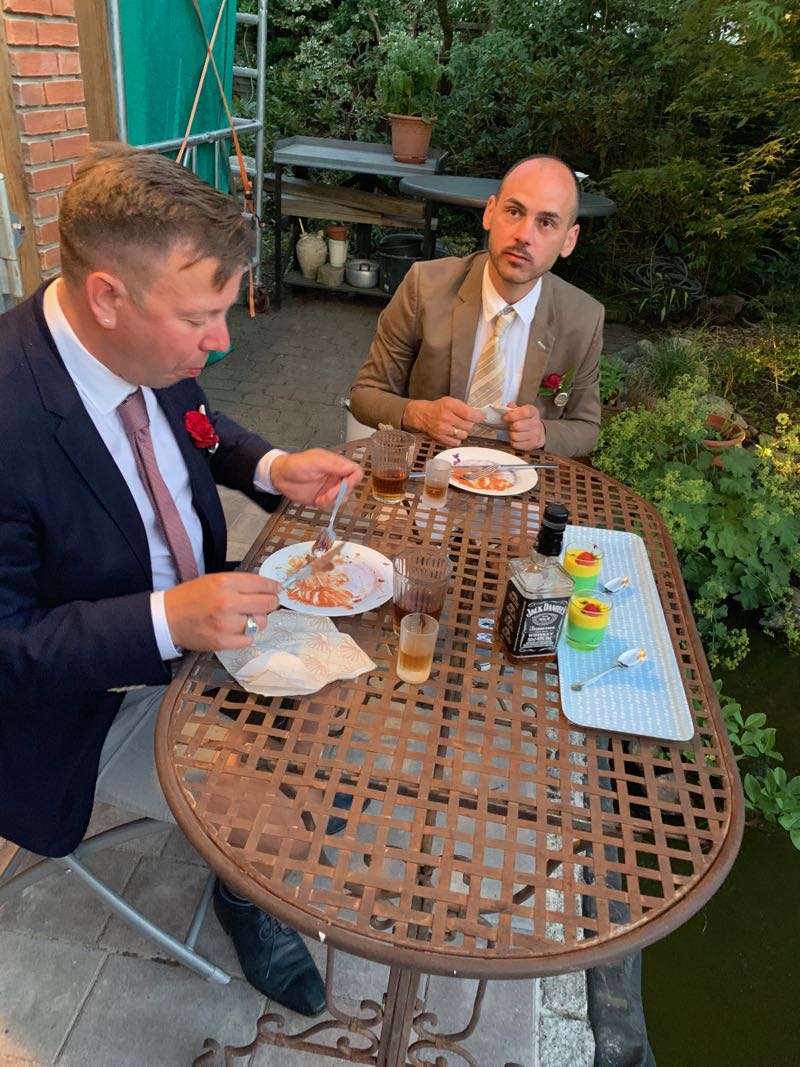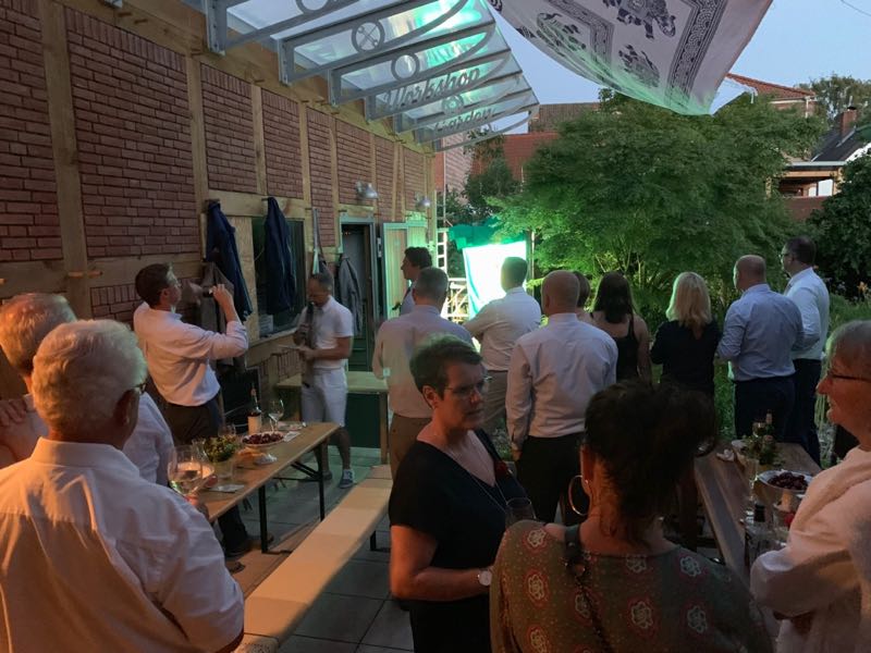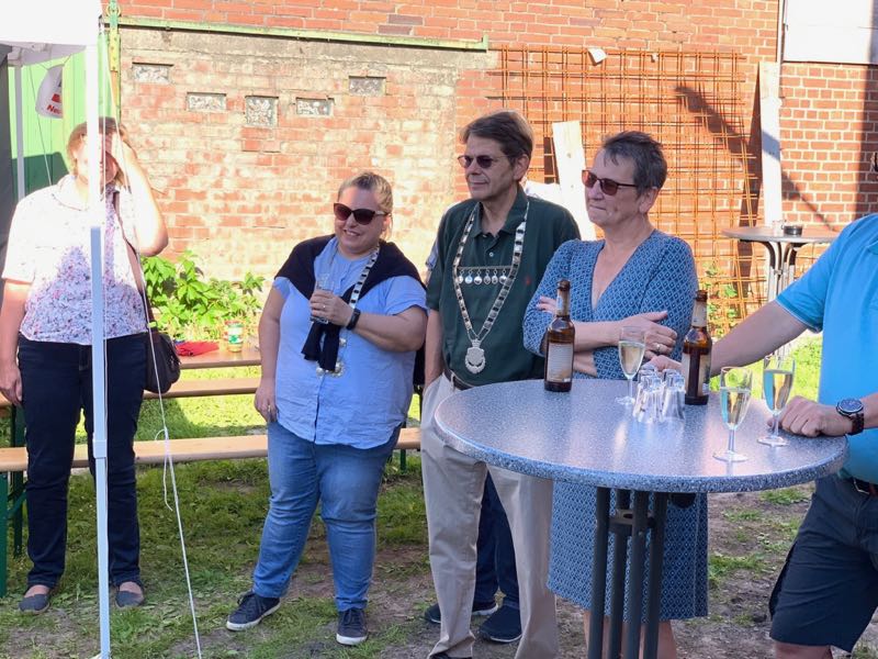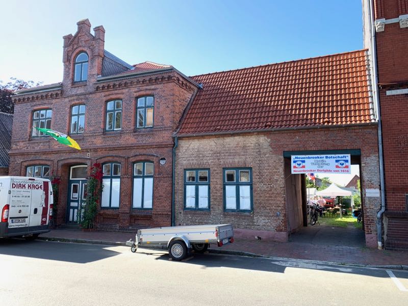 Am Freiteg sind sicherlich die meisten Gildeschwestern und Brüder sowie unserer Gilde wohlgesonnene Kremper damit beschäftigt, die Häuser und Straßen zu schmücken und weitere Gildegeister zu wecken. Hinzu kam ein Empfang in der mobilen Neuenbrooker Botschaft, welche zur Zeit in Person des Ältermannes der Neuenbrooker Gilde und seines Mannes hinter der Börse in der Breiten Straße residiert. Hohe Würdenträger beider Gemeinden wohnten dem Empfang bei und es wurde bis ins Dunkelwerden der kulturelle Austausch gepflegt.