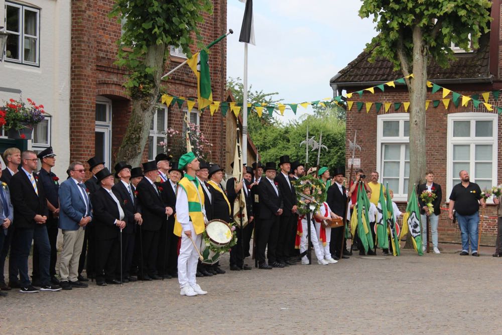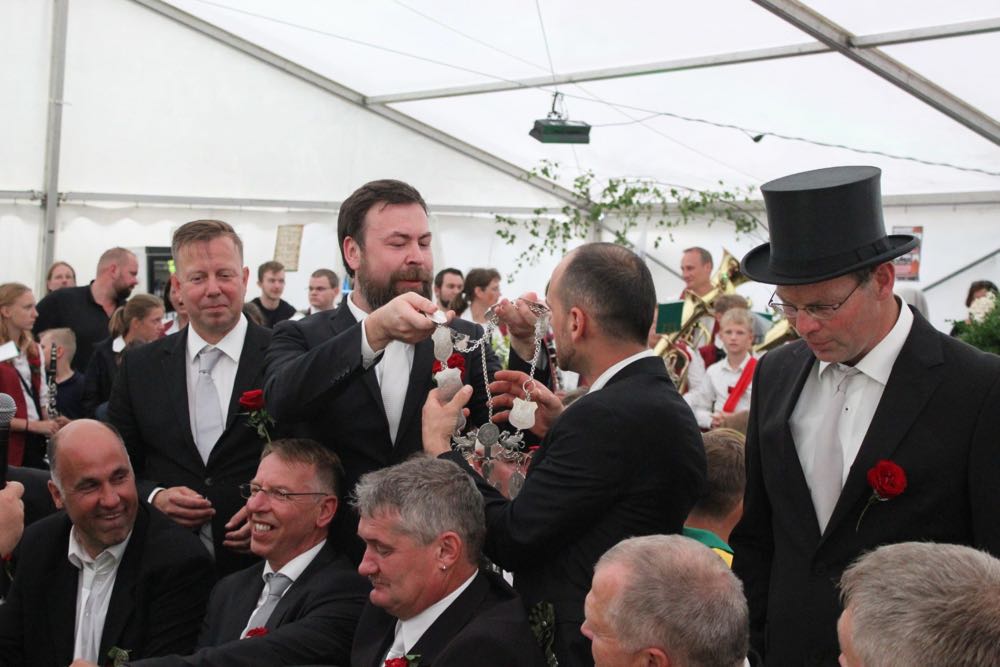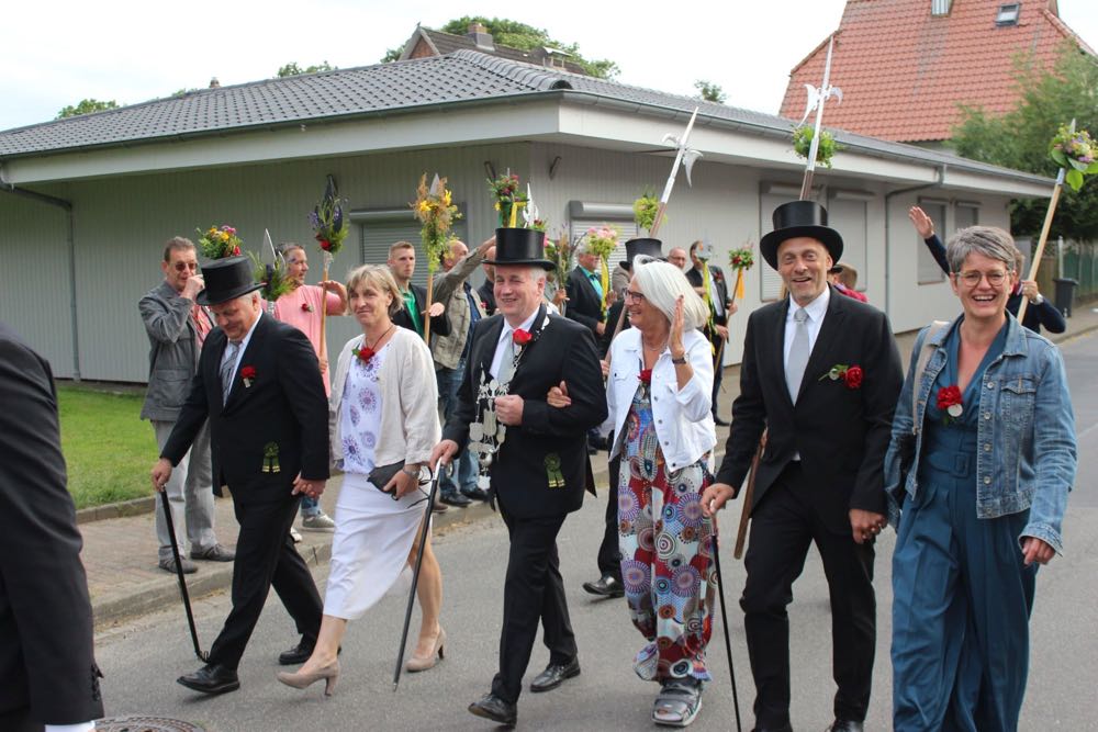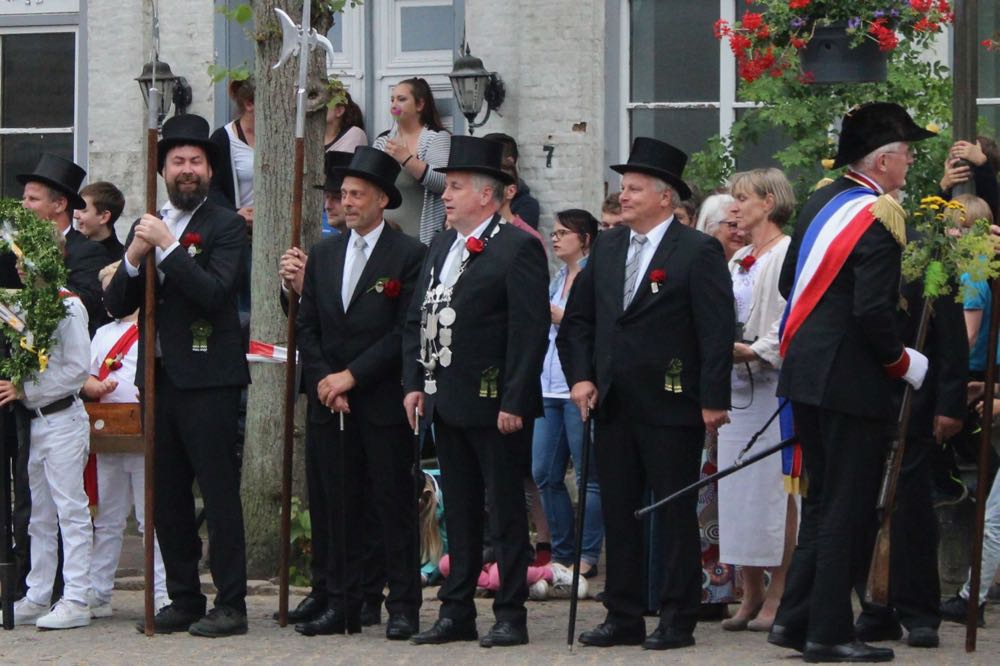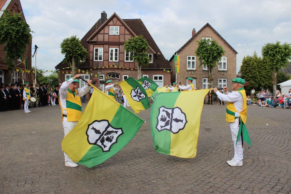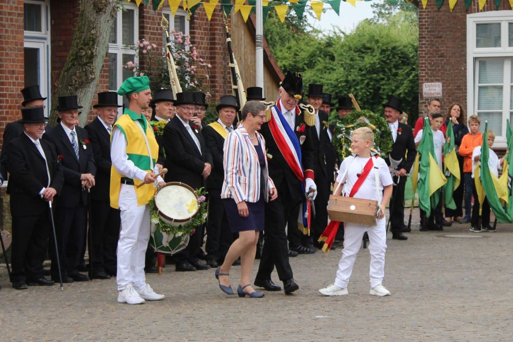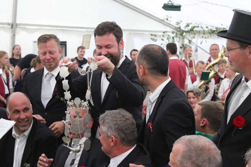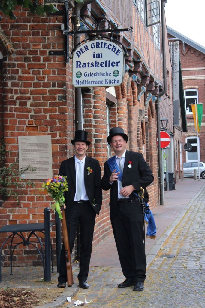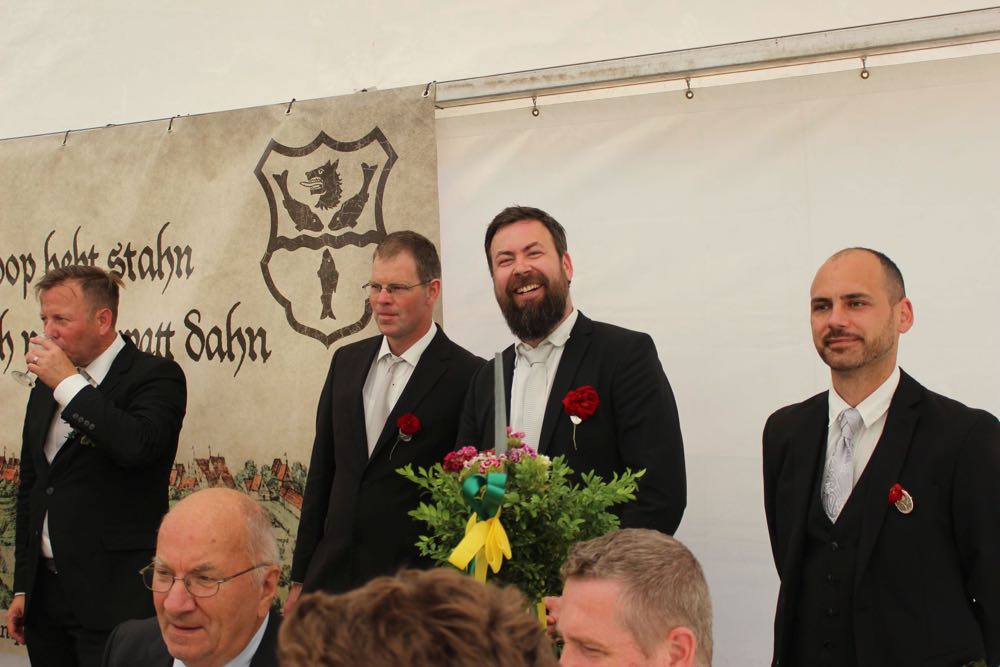 Hallihallo, hier fix Uwes Bilder vom Gildemontag mit Fahnenschwenken, Einkehren der Schützen, Vogelpicken, Schiessen und unserem neuem König „Knut der Instrumentale“ Liedtke und den Excellenzen Kultur Kai Looft und Finanzen Marco Mein….