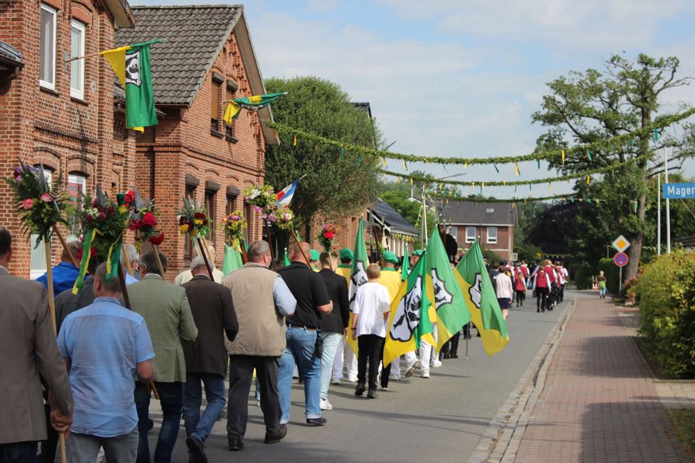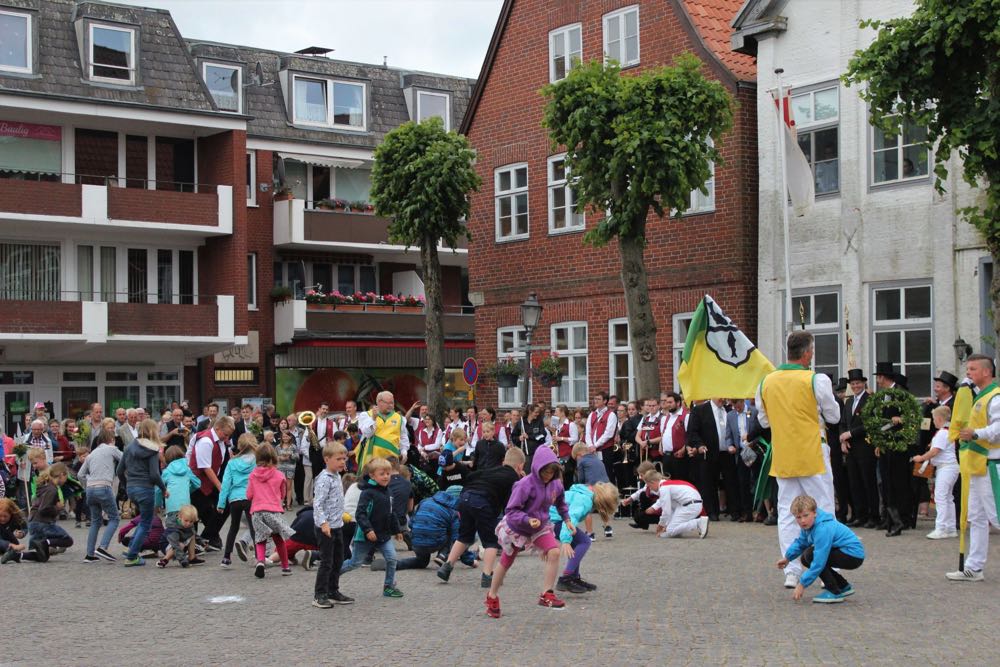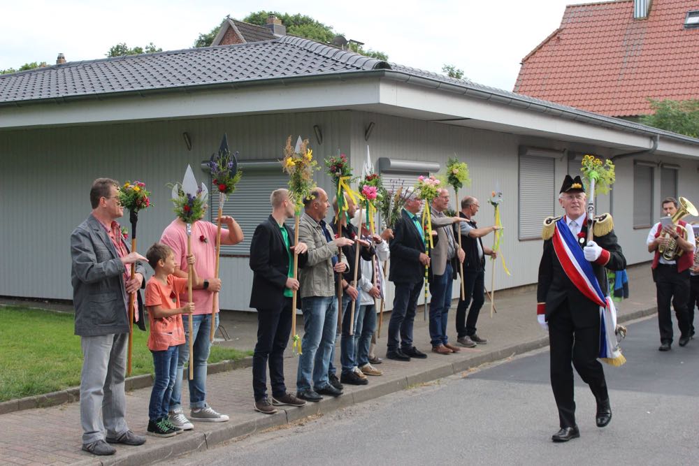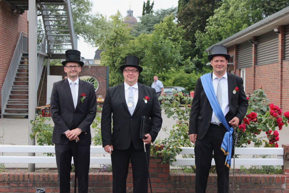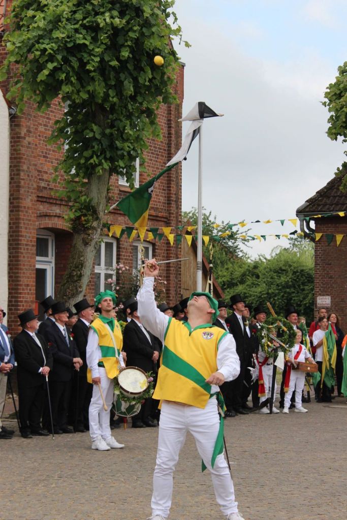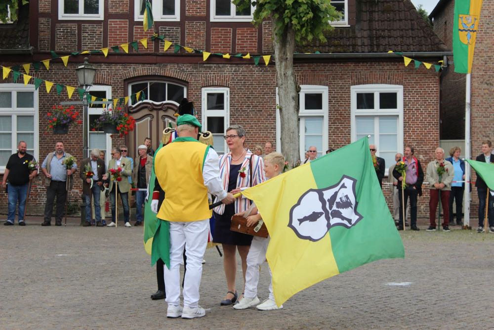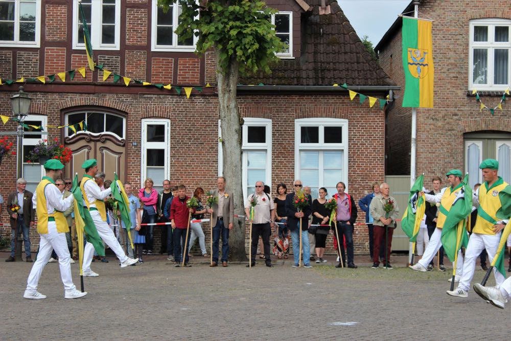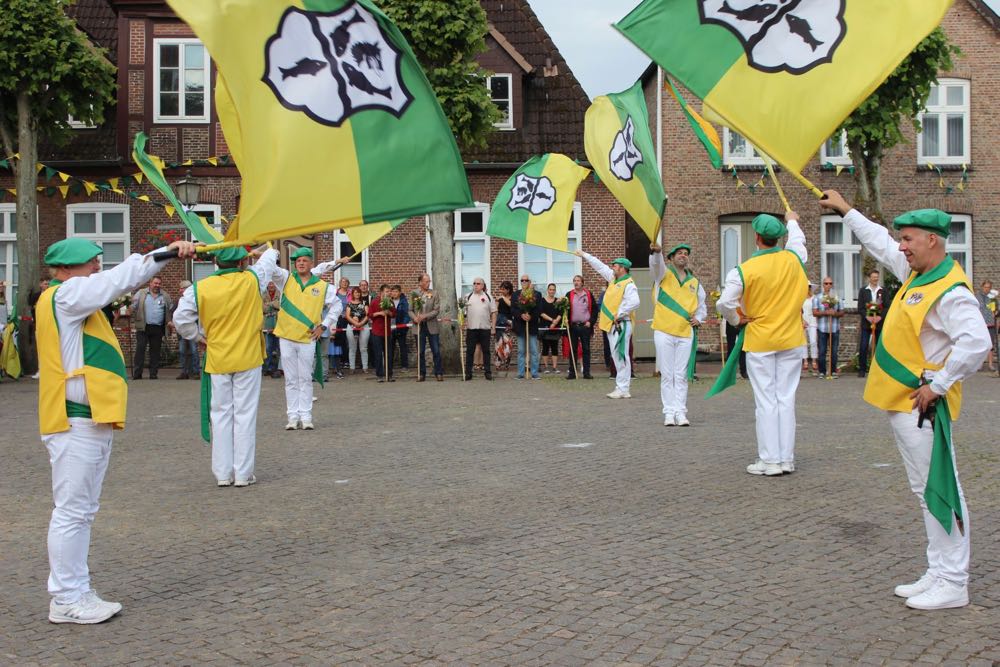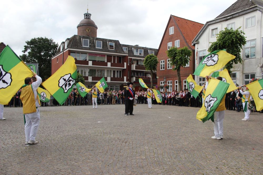 Hallihallo, hier fix Uwes Bilder vom Gildemontag mit Fahnenschwenken, Einkehren der Schützen, Vogelpicken, Schiessen und unserem neuem König „Knut der Instrumentale“ Liedtke und den Excellenzen Kultur Kai Looft und Finanzen Marco Mein….
