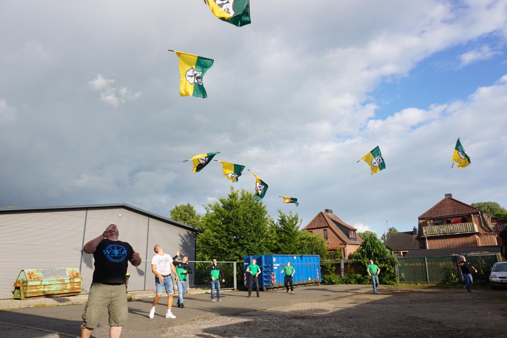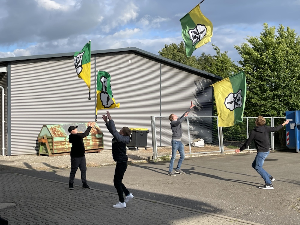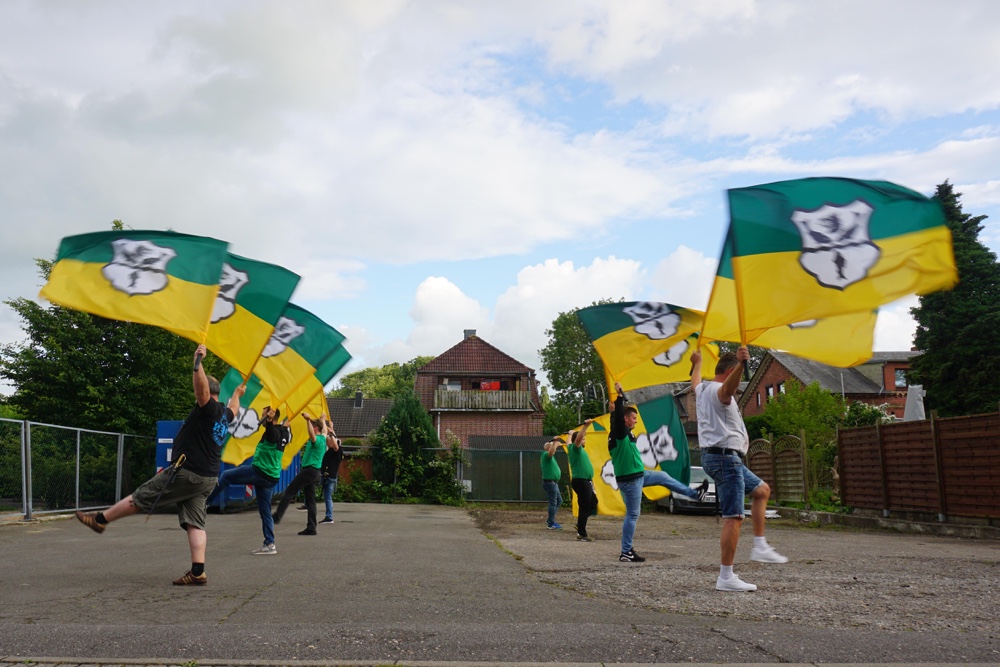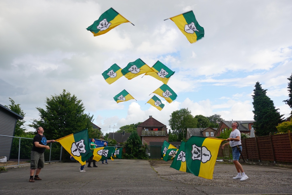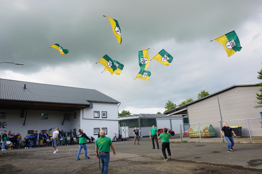 Am Montagabend um 19:00 Uhr fand an einem geheimen Ort zu einer noch geheimeren Zeit die Generalprobe der Fahnenschwenker und der Jung-Fahnenschwenker statt. Es wurde das aktuelle Programm mit den neuen Fahnen ein letztes Mal vor der Zitronenübergabe geprobt. Wir lassen die Bilder mal für sie sprechen. Bilderdank an Thomas.