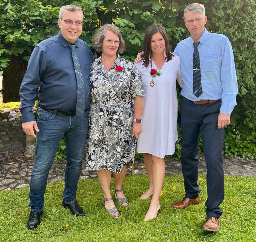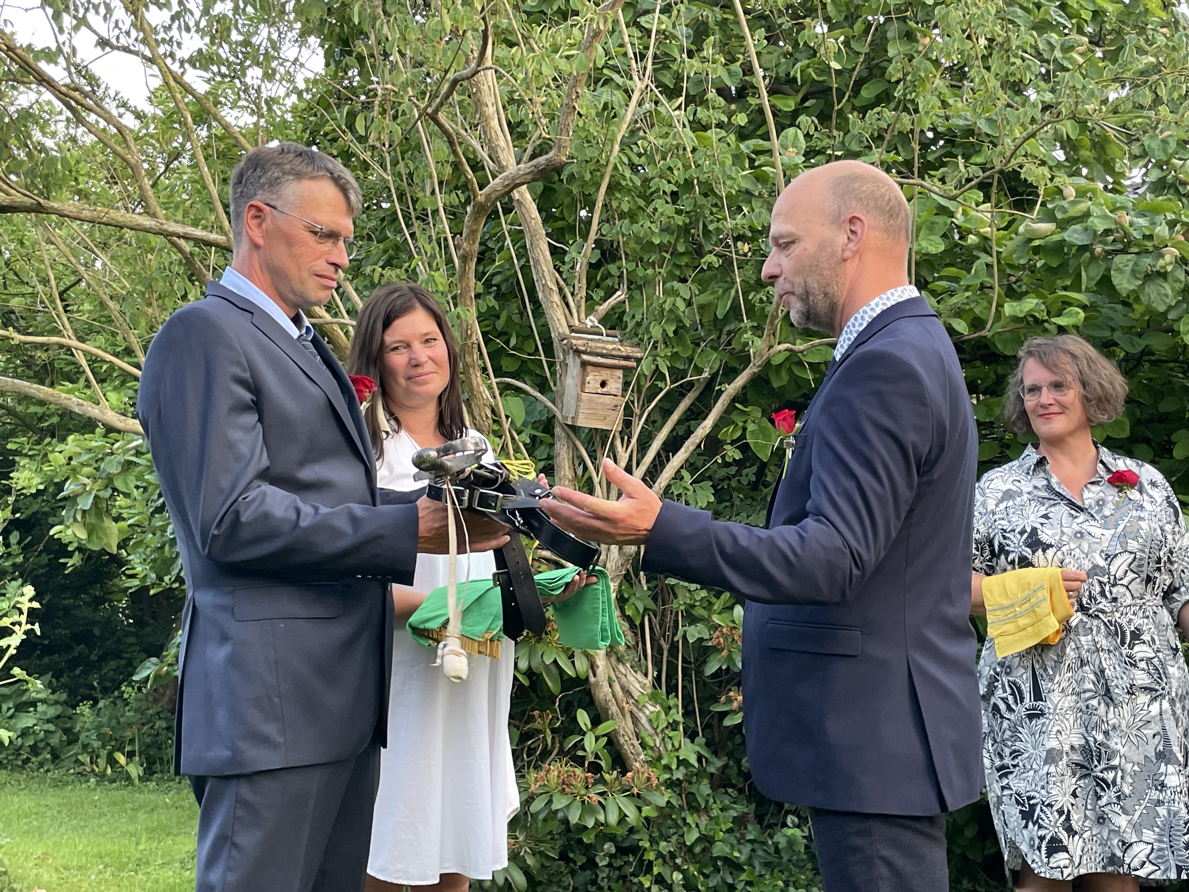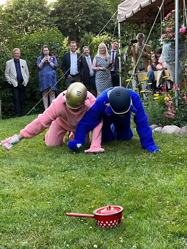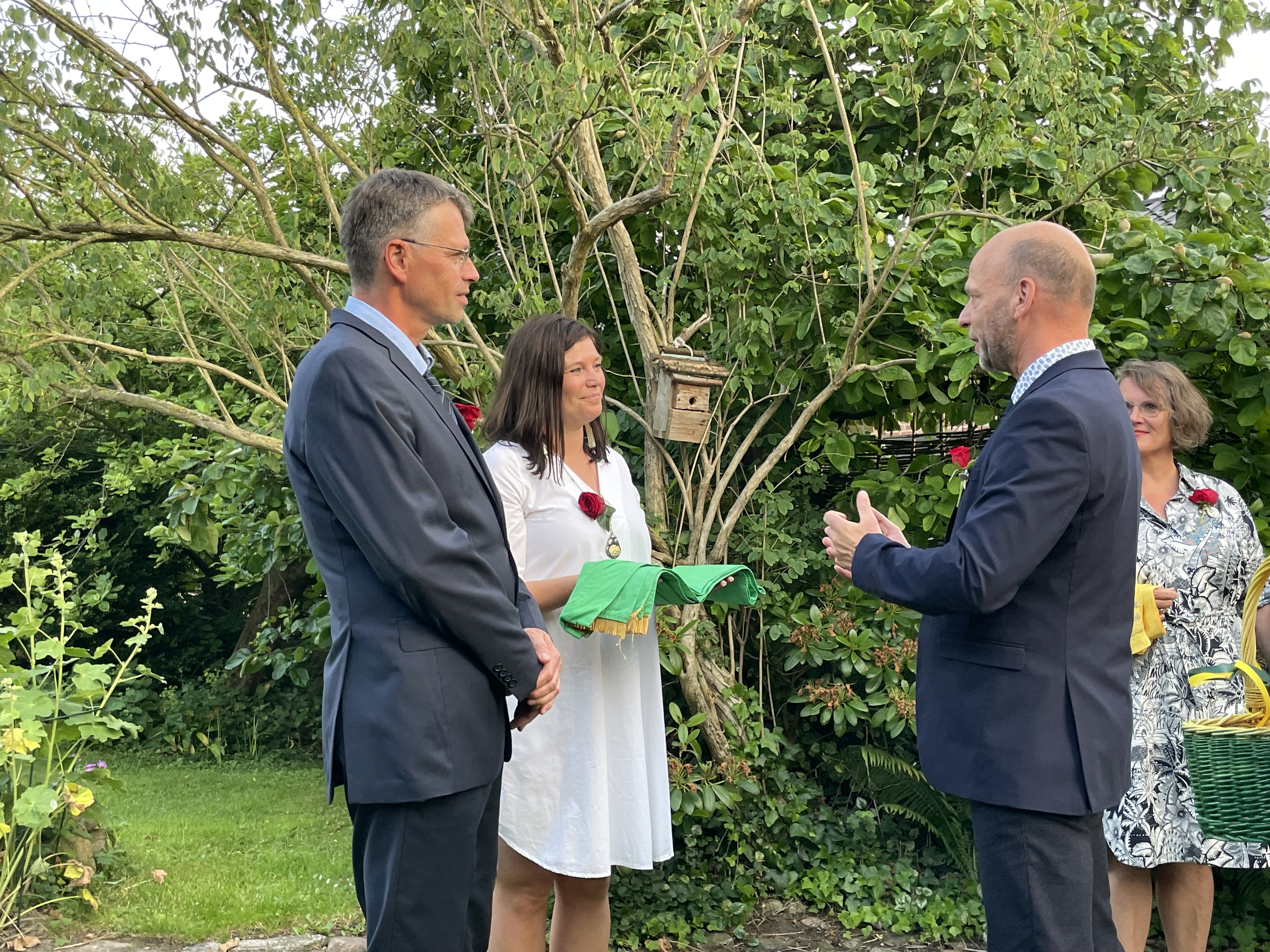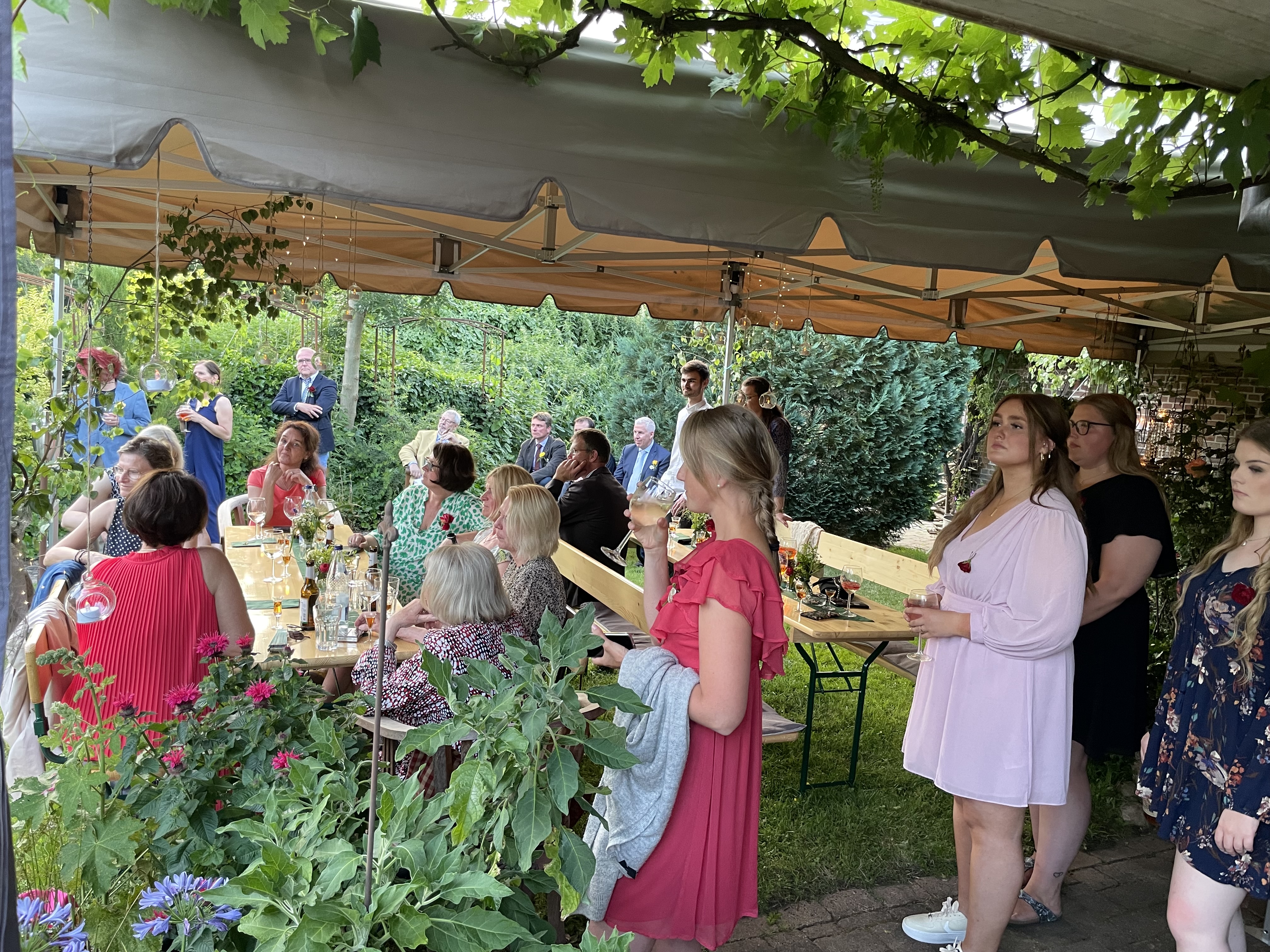 Eine Gildeveranstaltung / Dienst reiht sich an die nächste in diesen Tagen und dann sind auch noch besondere Einladungen wahrzunehmen…Am Freitag abend lud das Neuenbrooker Botschafterältermannaltschafferpaar Ahrens in ihre mobilde Vertretung zu einem kleinen Empfang mit Häppchen (abgespreizter Finger am Bitternglas selbstredend…Etikette und so!) Auch die Bürgermeister:inn beider Orte sowie die jeweiligen Regenten gaben sich die Ehre. Samstag morgen ginge es für die Schaffer früh raus um die Birken zu schlagen und auszuliefern, leider das Maßband vergessen, so waren eigentlich alle Gewächse bauamtlich zu hoch und mussten daher meist waagerecht an den zu beliefernden Gildehaushalten montiert werden… bei Bürgermeisters machte der Garten einen etwas schlappen Eindruck, woraufhin die Schafferriege selbstlos nachdüngte. Danke an den AOiR Piening, der den Schafffer-Streitwagen lenkte. Der restliche Gildevorstand war unterdessen mit Aufbau der großen Einkehr sowie des Schiesstandes beschäftigt. Abends fanden die drei traditionellen Säbelübergaben in den Haushalten des Hauptmanns und der Altoffiziere statt was sehr schön vom Gildeschreiber zeremoniert wurde, danach wurden noch flott die Schaffertierchen 2.0 auf ihre Einsatztauglichkeit untersucht und abgefüttert, bevor dann noch lange zusammen gefeiert wurde. Der Pegel sollte also nie zu tief sinken. Heute morgen waren dann Vorbereitungen zum Kranzbinden, welches just in dem Moment dieses Niederschriebes von Frau Hauptmann anmoderiert wird. Ferner gab es noch den stimmungsvollen und feierlichen Gildegottesdienst und das Säbelexerzieren beim Hauptmann um die eingerosteten Truppenteile der Schützen nach drei Jahren der Enthaltsamkeit zu reaktivieren um auf dem Marktplatz und allen Einkehren das Publikum mit astreinem Drill zu beeindrucken. Weiter Bilder folgen asap nach Verfügbarkeit. Dank an Martin und Thomas.