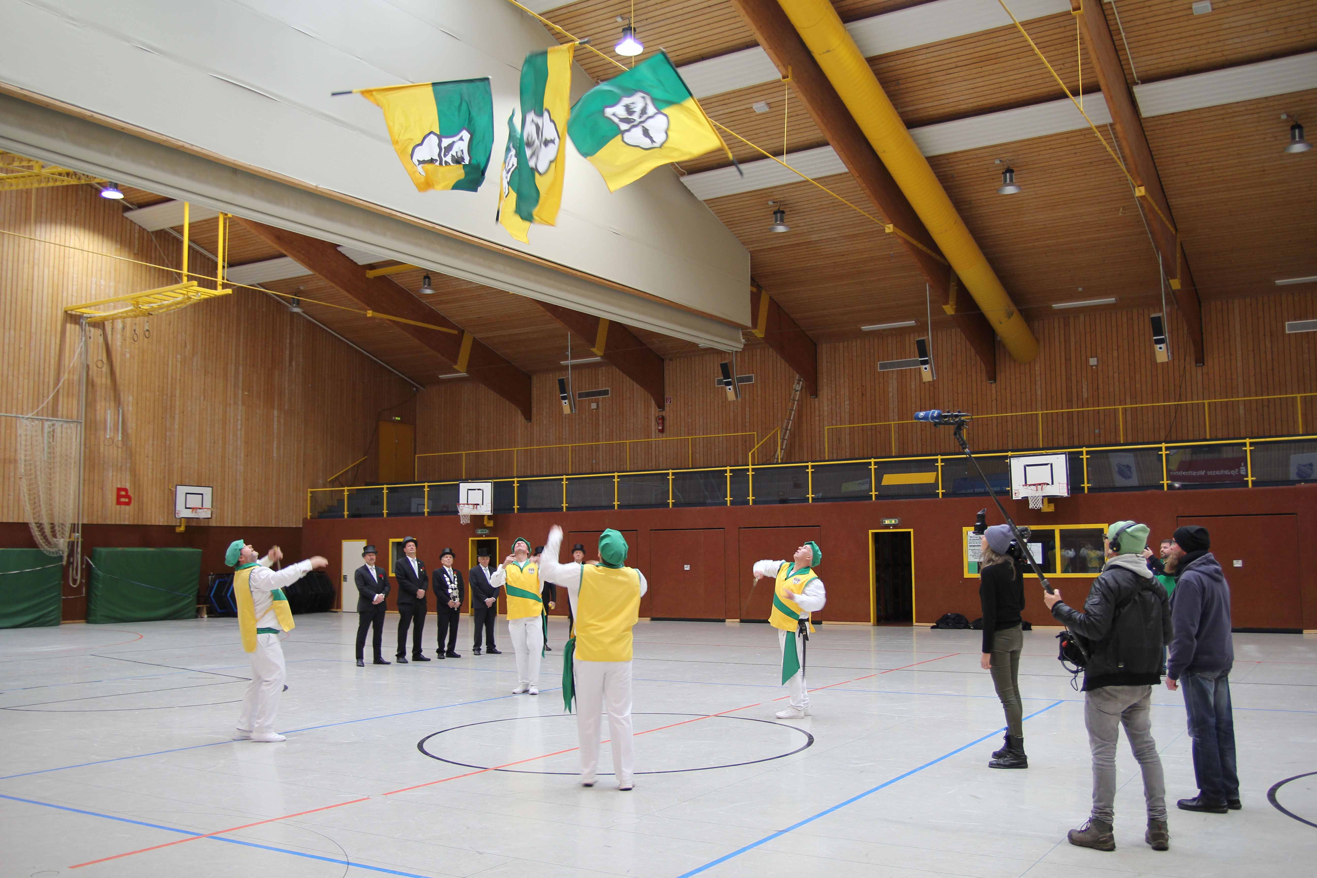 Der Norddeutsche Rundfunk ist mit einem Kamerateam durch Schleswig-Holstein gereist, um Filmaufnahmen von besonderen Orten und/oder Ereignissen zu machen. Dass hierzu auch die Kremper Gilde gehört, hat den Vorstand dann auch besonders gefreut. Und so traf man sich in der Kremper Sporthalle, um dem NDR Interviews zu geben und die Fahnenschwenker mit den Tambour*innen zu präsentieren. Aller Voraussicht nach wird der Beitrag Anfang Januar bei NDR 3 zu sehen sein.