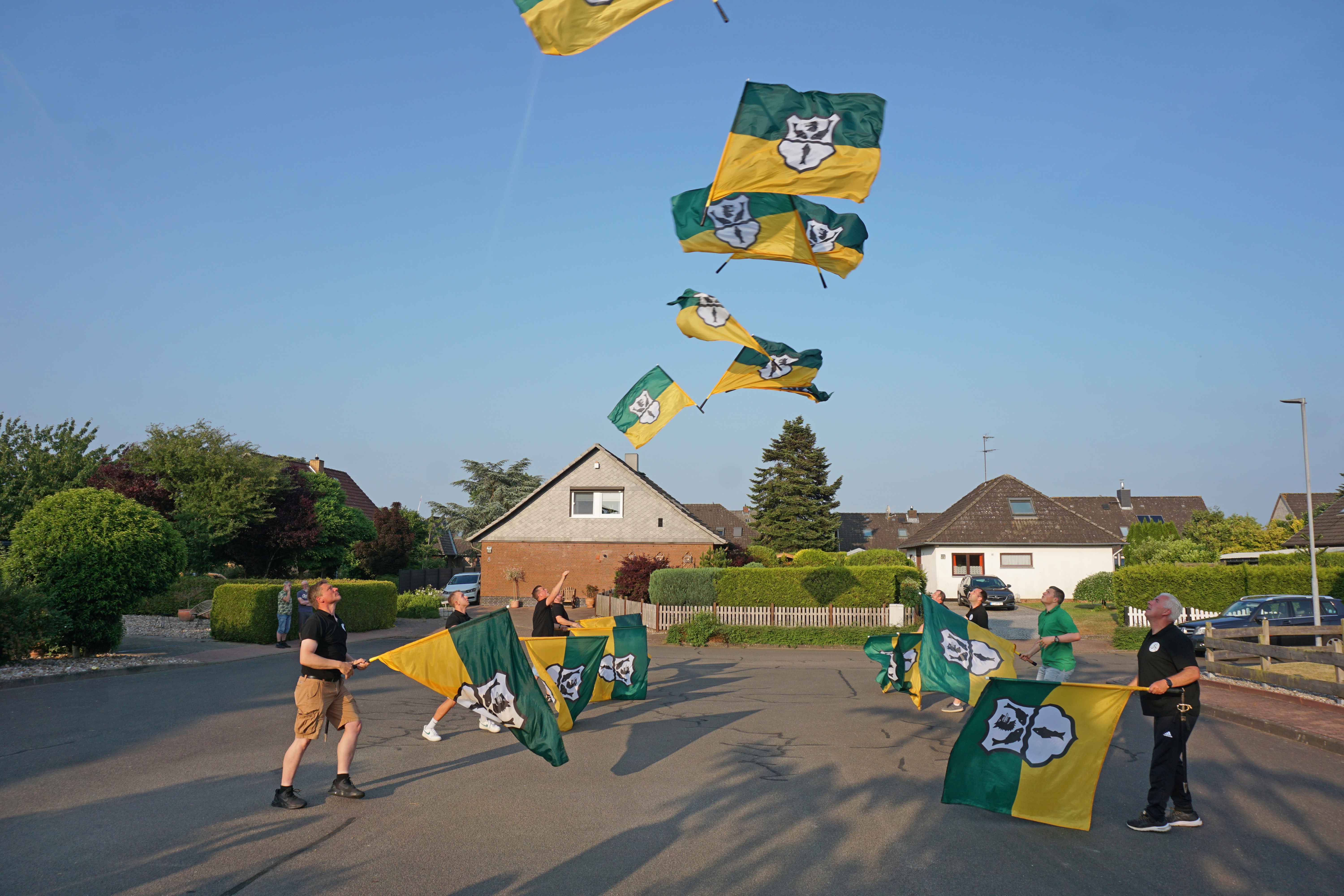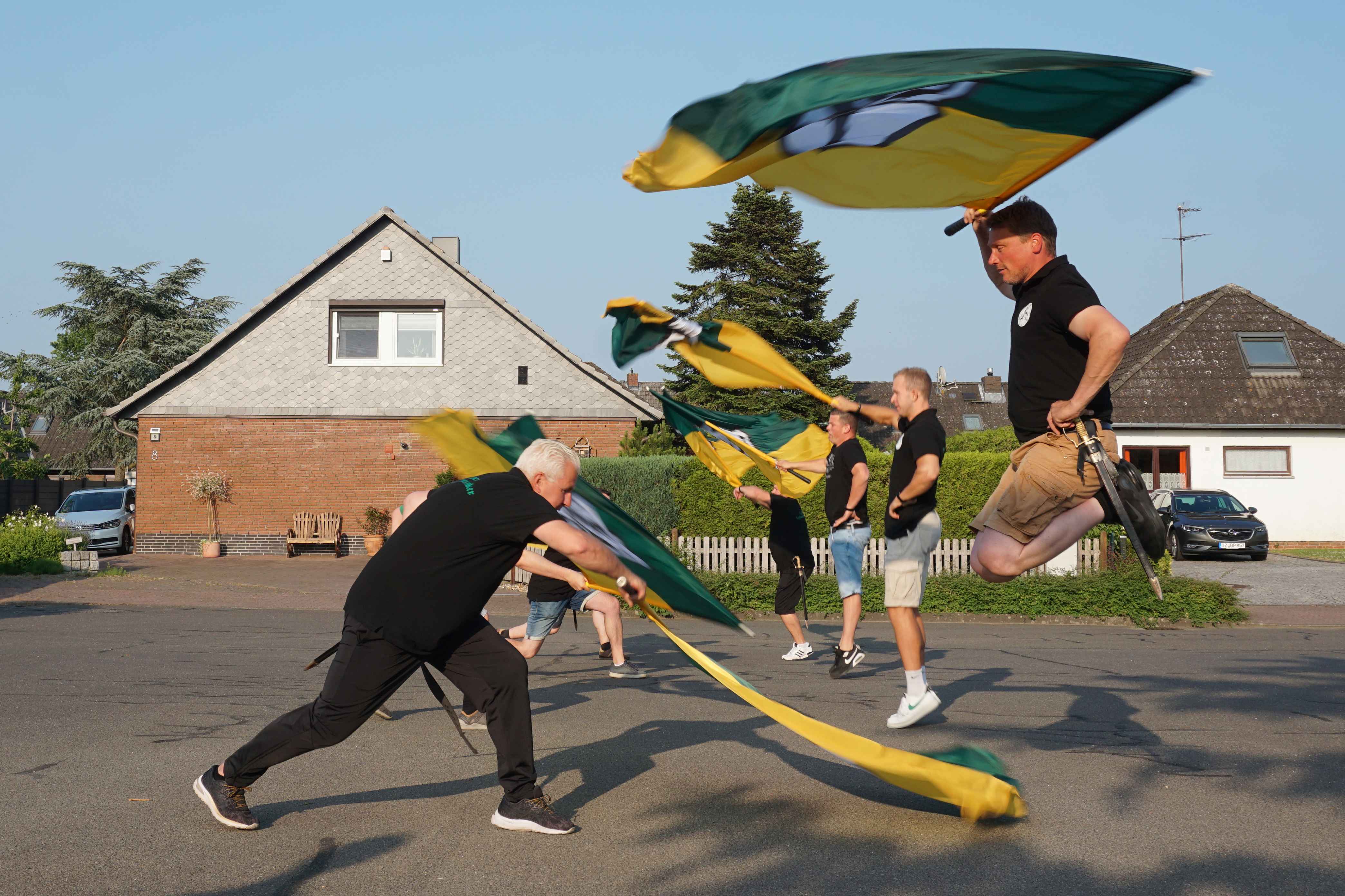 Es ist eine Tradition, die schon seit etlichen Jahrzehnten besteht: Genau eine Woche vor dem Gildemontag gibt es eine Generalprobe der Fahnenschwenker, Jungfahnenschwenker und Tamboure, damit das Fahnenschwenken auf dem historischen Marktplatz auch klappt. So auch in diesem Jahr. Mit von der Partie waren auch Hauptmann Torben Dreilich, Zitronenlieferant Thomas Bonke-Möller sowie einige geladene Gäste.