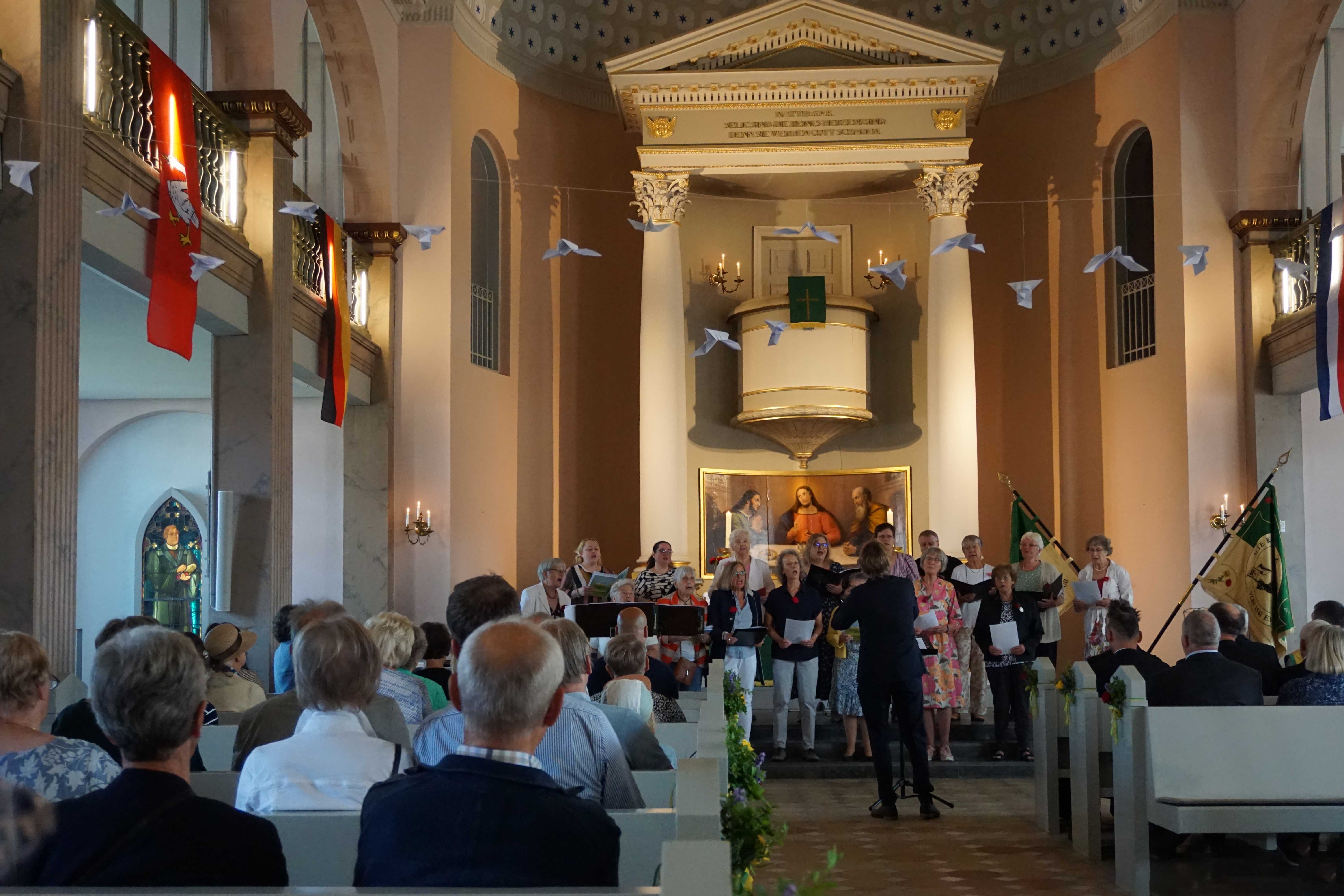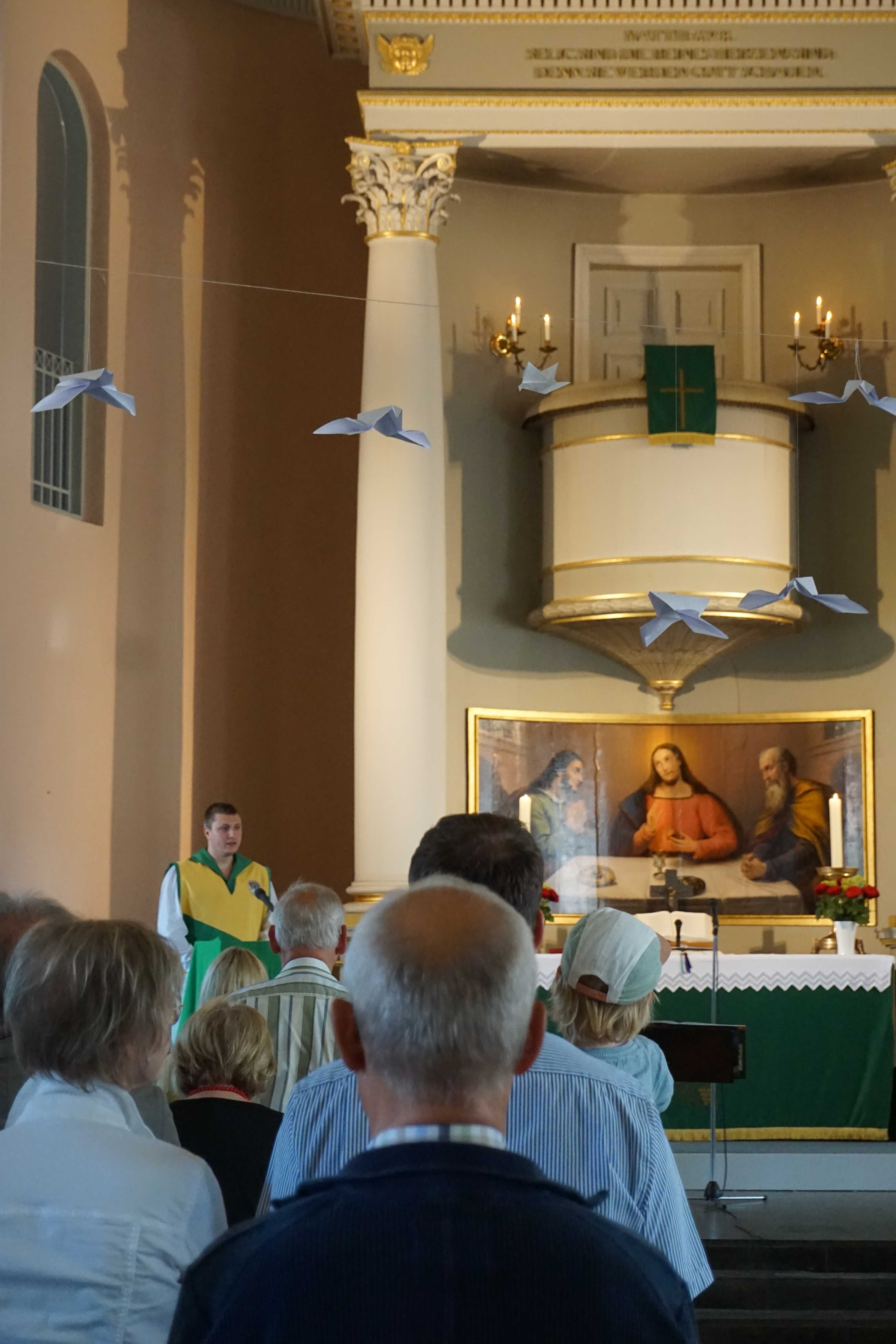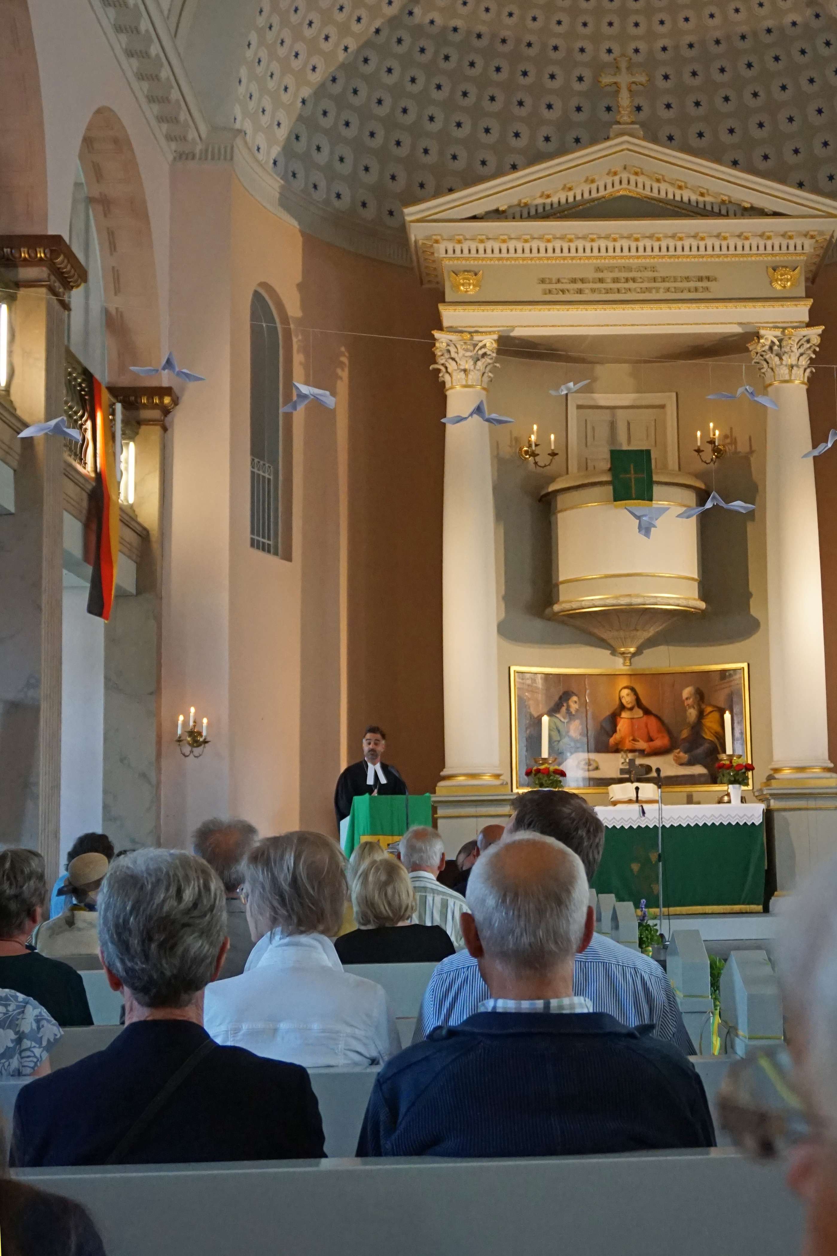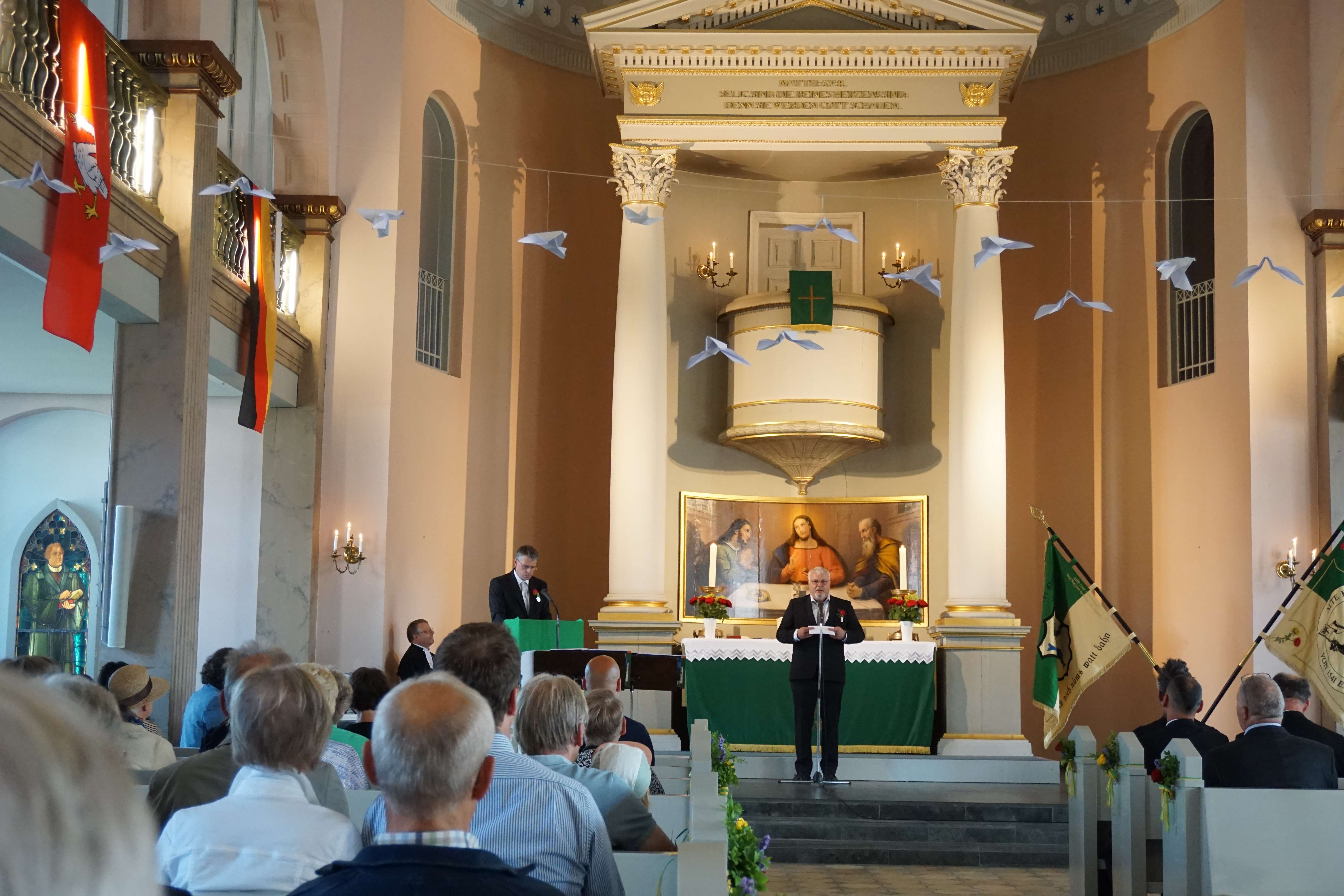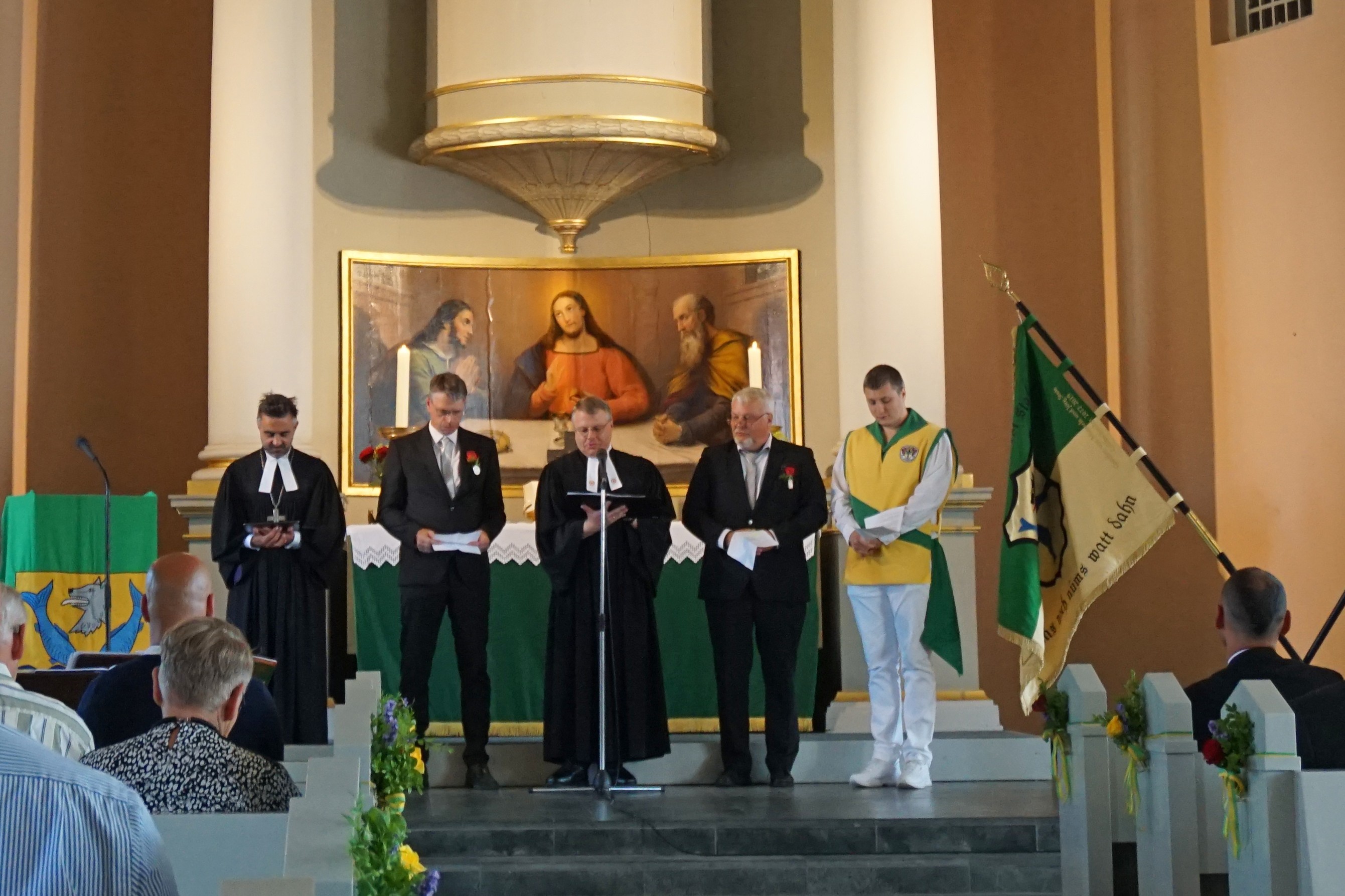 Traditionsgemäß beginnt der Sonntag vor dem Gildefest mit einem Gildegottesdienst. Pastor Bruhn und Propst Paar sowie mehrere Mitwirkende der Gilde haben diesen Gottesdienst gestaltet. Besondere Aufmerksamkeit erfuhr die beeindruckende Predigt von Propst Paar, die sich u.a. auf die Stärke der Gemeinschaft bezog und darauf, was ein Jeder in eine solche Gemeinschaft – wie die Gilde – einbringen kann.
