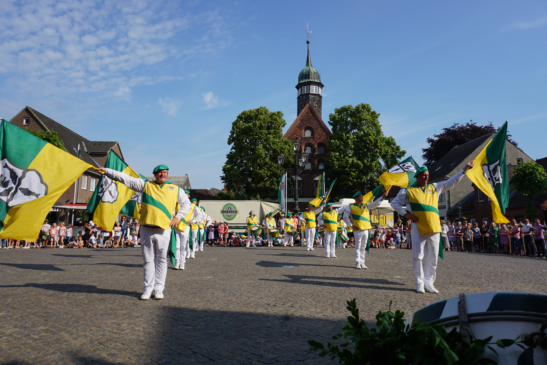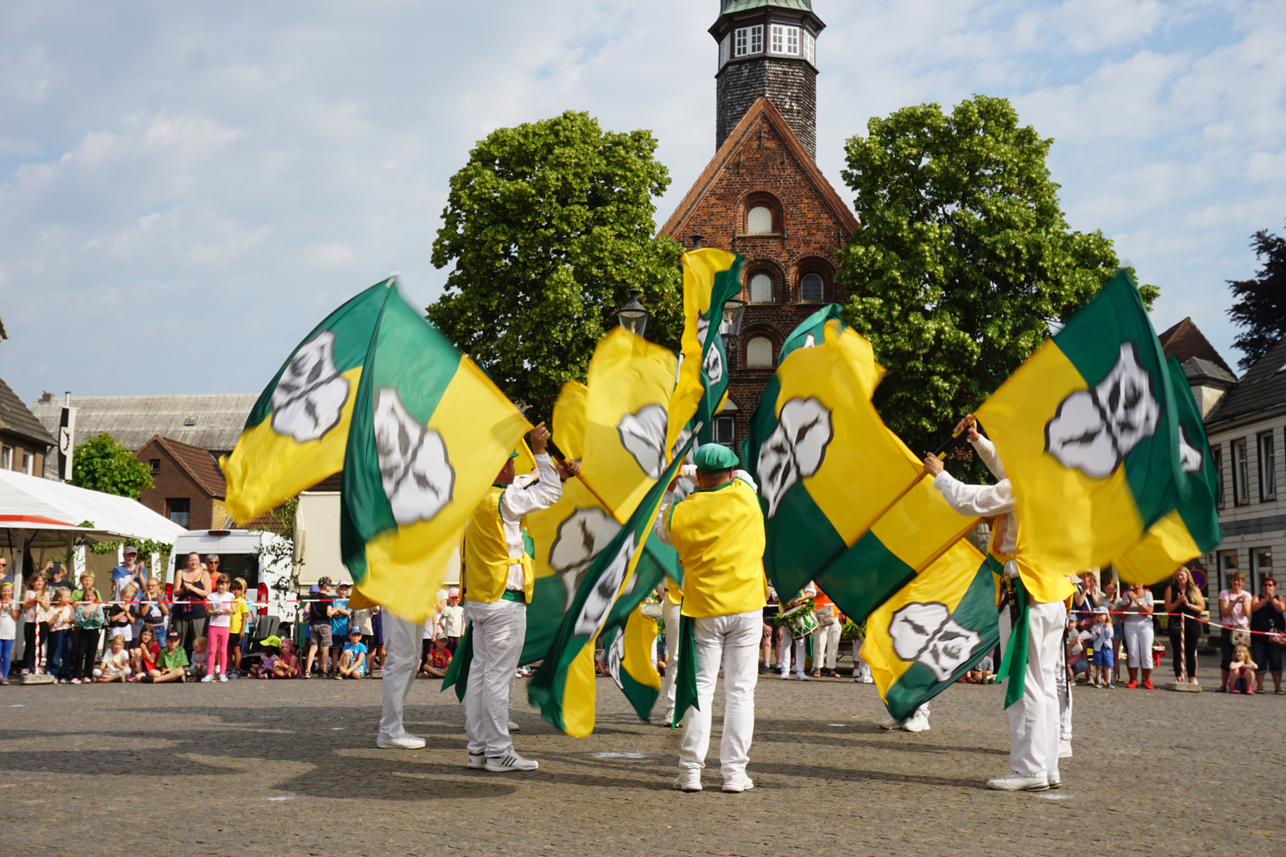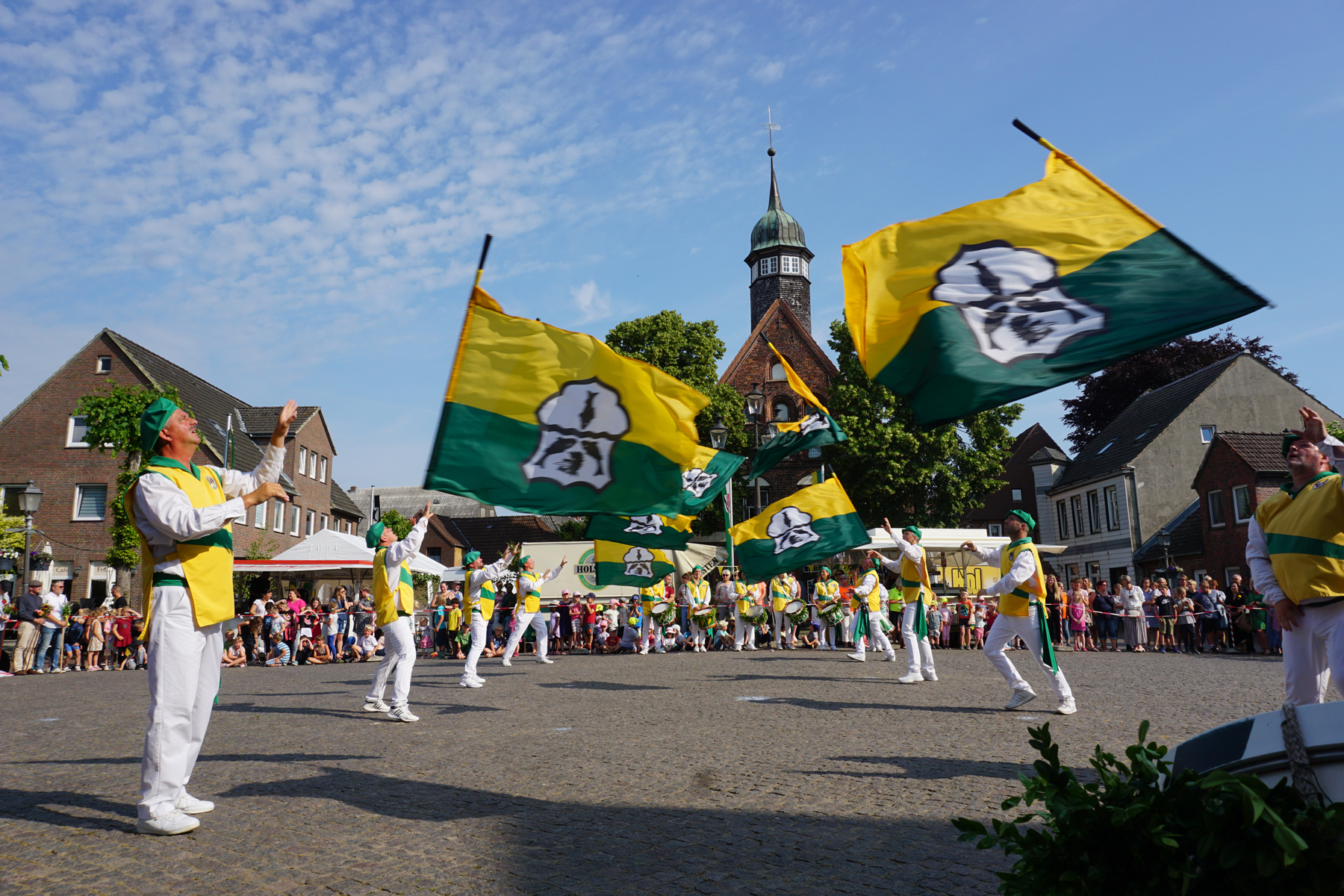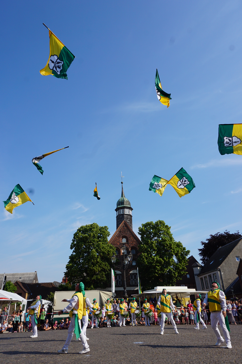 Zu einem der Höhepunkte des Gildefestes gehört das Fahnenschwenken. Acht Fahnenschwenker, die Tamboure und die Jungfahnenschwenker begeistern jedes Jahr mehrere Hundert Zuschauer, die sich am Morgen und am Abend dieses Ereignis auf dem Marktplatz nicht entgehen lassen wollen. Zu dem – nur in Krempe gezeigten – Zitronenwurf überreichte am Morgen Itzehoes Bürgermeister Ralf Hoppe und am Abend der Zitronenlieferant Thomas Bonke-Möller die Südfrüchte an die Fahnenschwenker.