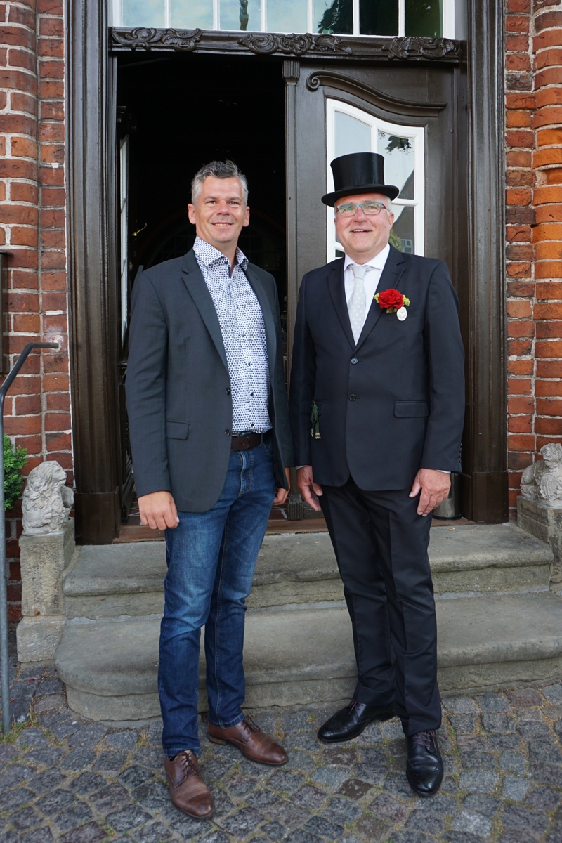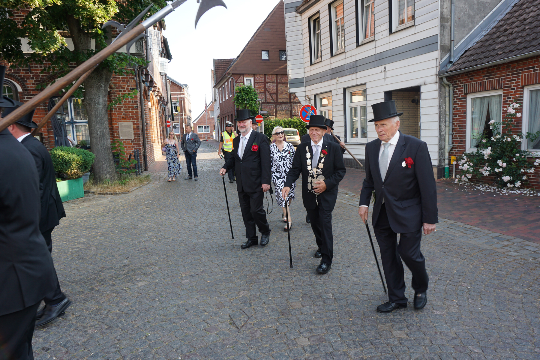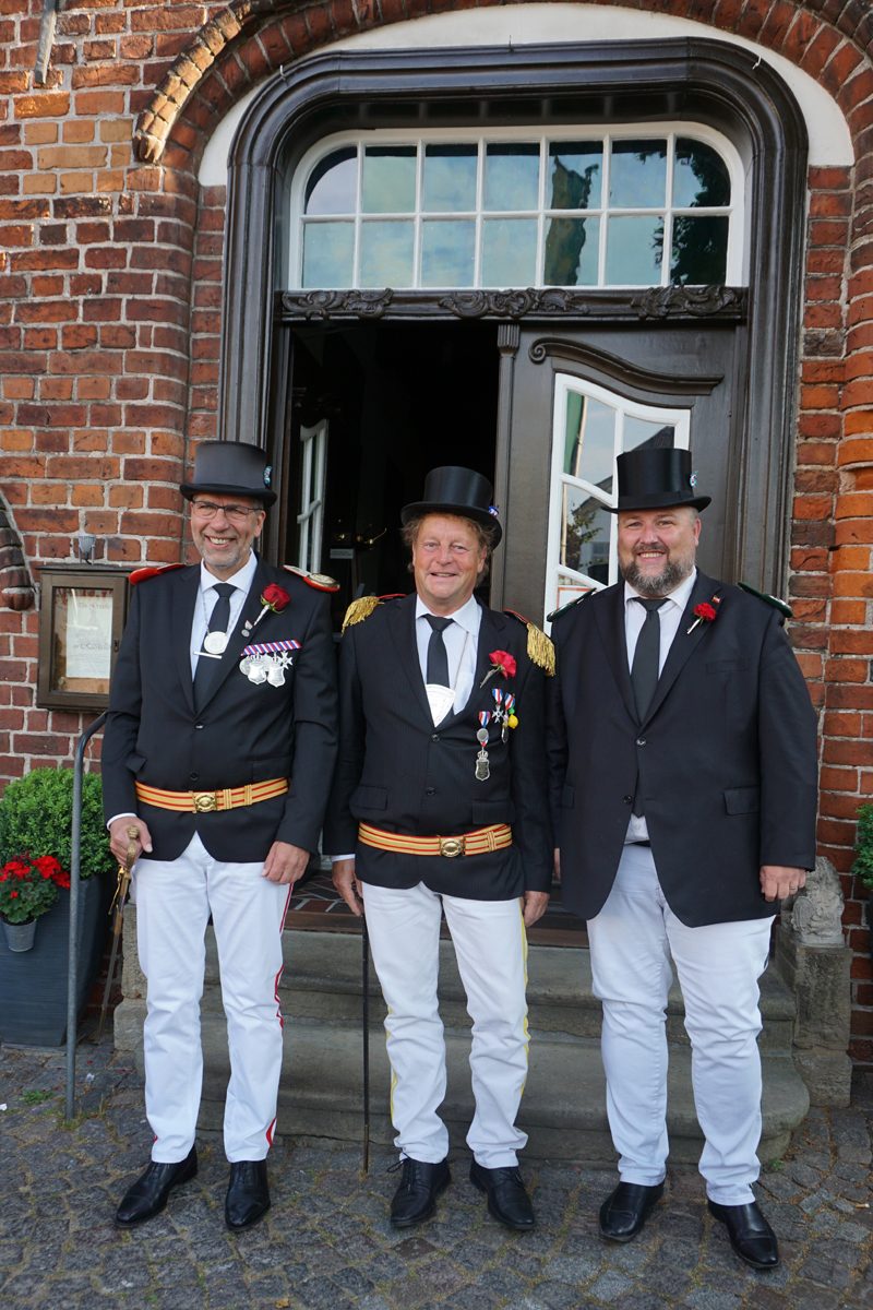 Am frühen Gilde-Montagmorgen gab es einen Empfang für den amtierenden König und seine Minister. Außer den Vorstandsmitgliedern waren Ehrenmitglieder und geladene Gäste anwesend. Bei dem Empfang wurde Portwein und Eiermahn gereicht, bevor sich die gesamte Gesellschaft auf den Marktplatz begab, um sich das Fahnenschwenken anzusehen.