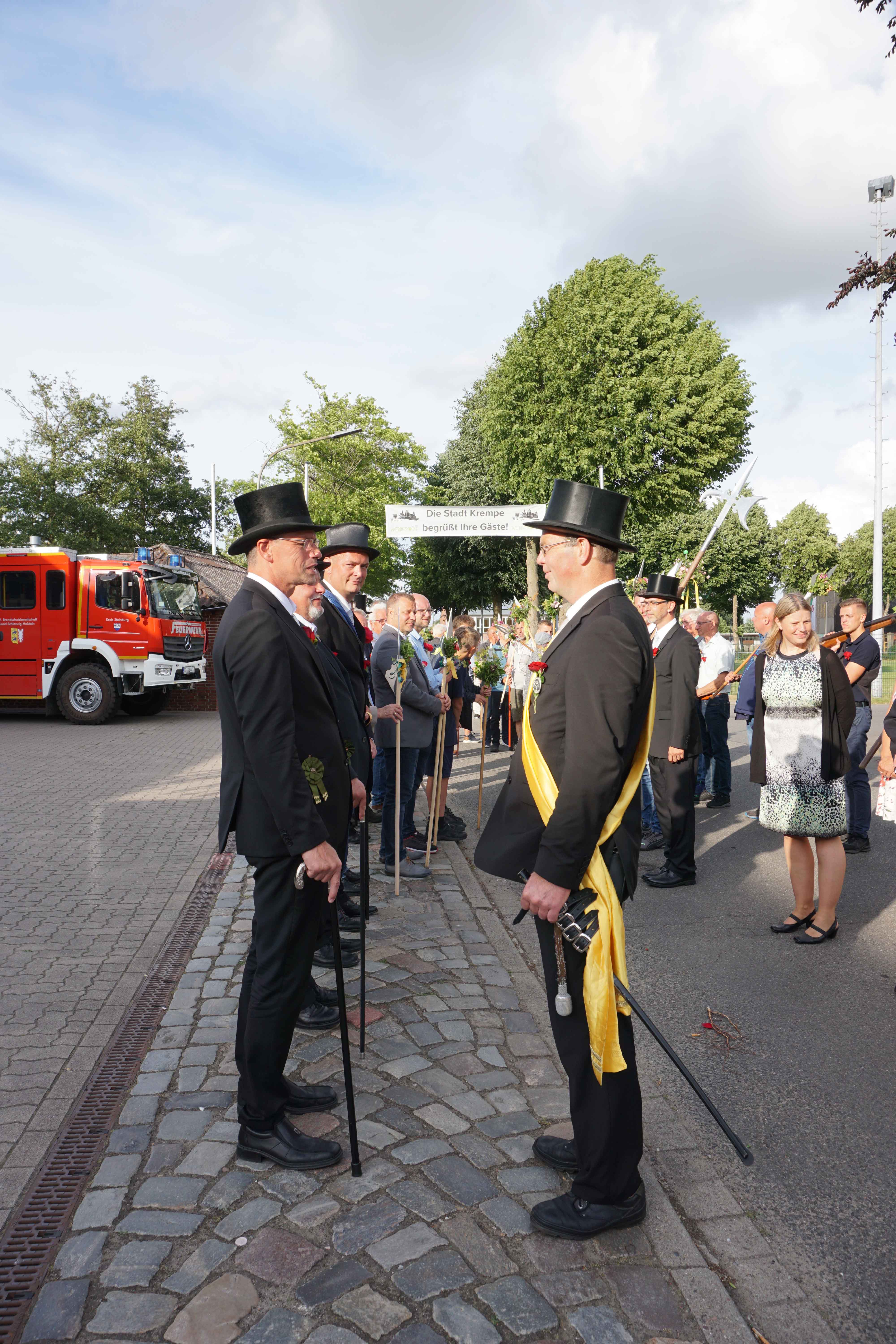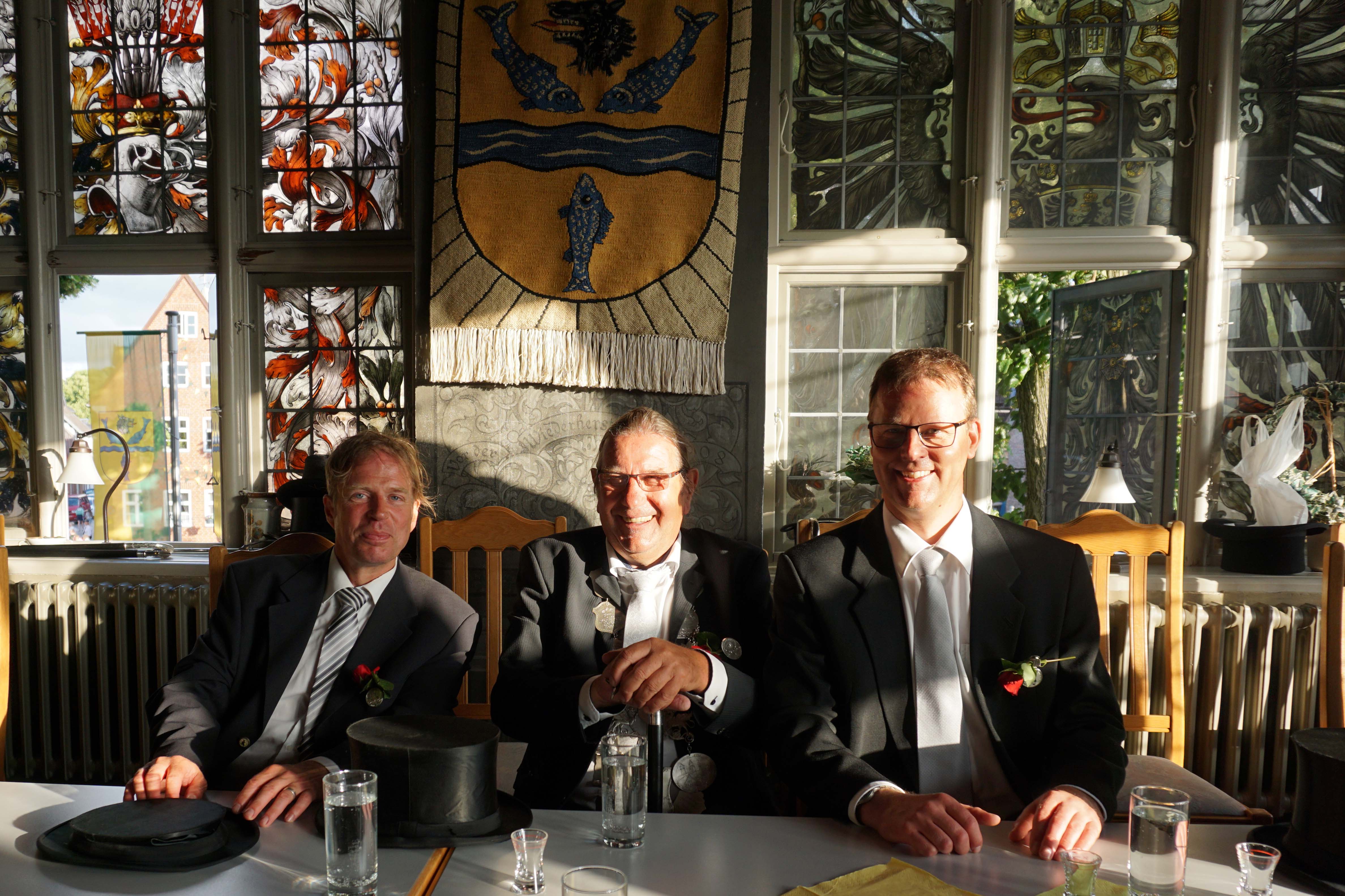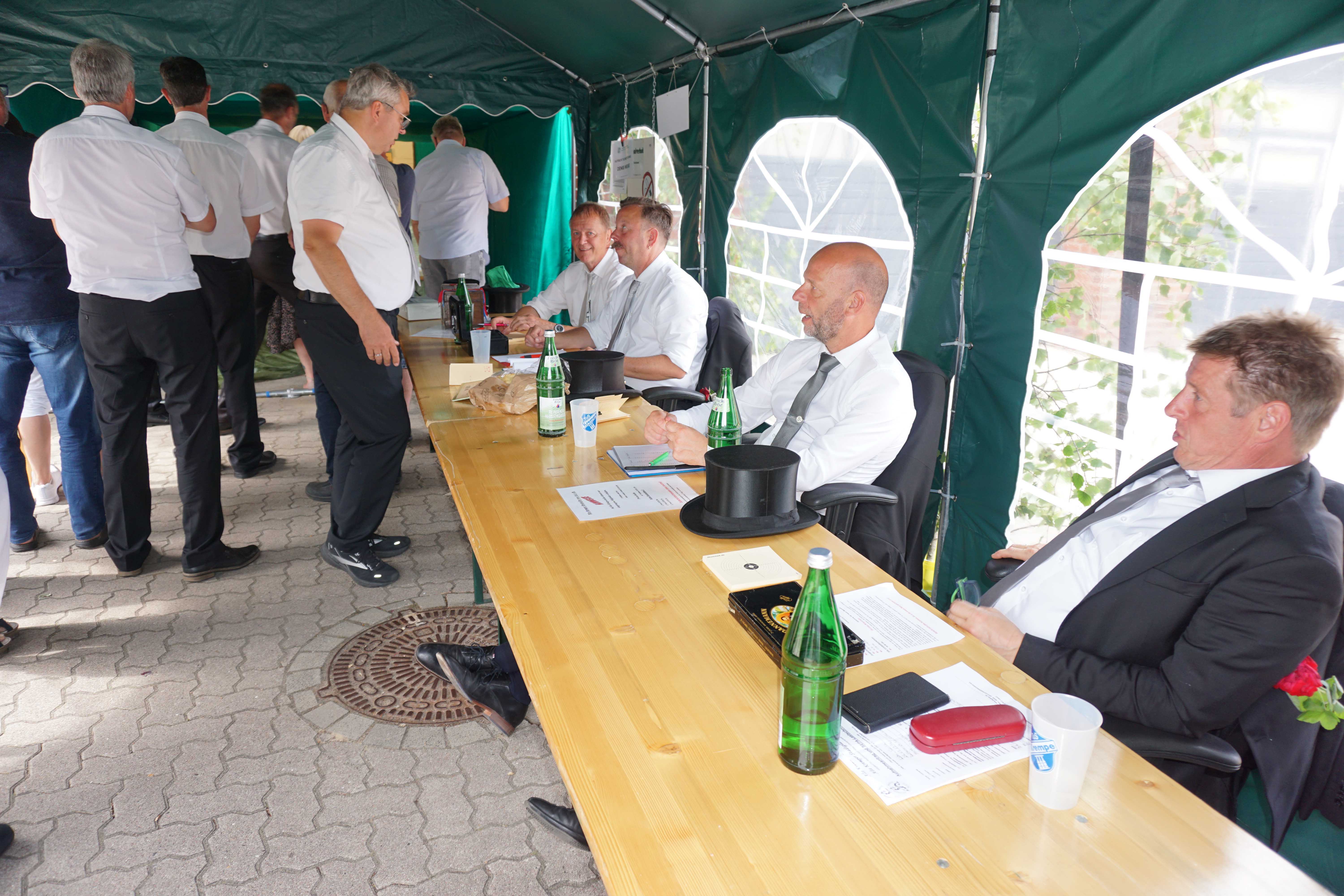 Danach wurden die Offiziere und Schaffer befördert. Einige wollten so gern ihre angestammten Posten behalten. Aber der Ältermann war unnachgiebig – alle Offiziere und Schaffer wurden auf das jeweils nächst höhere Amt befördert. Allerdings werden diese Beförderungen erst wirksam, wenn am Gilde-Dienstag zwei neue Jungschaffer vorgestellt werden.