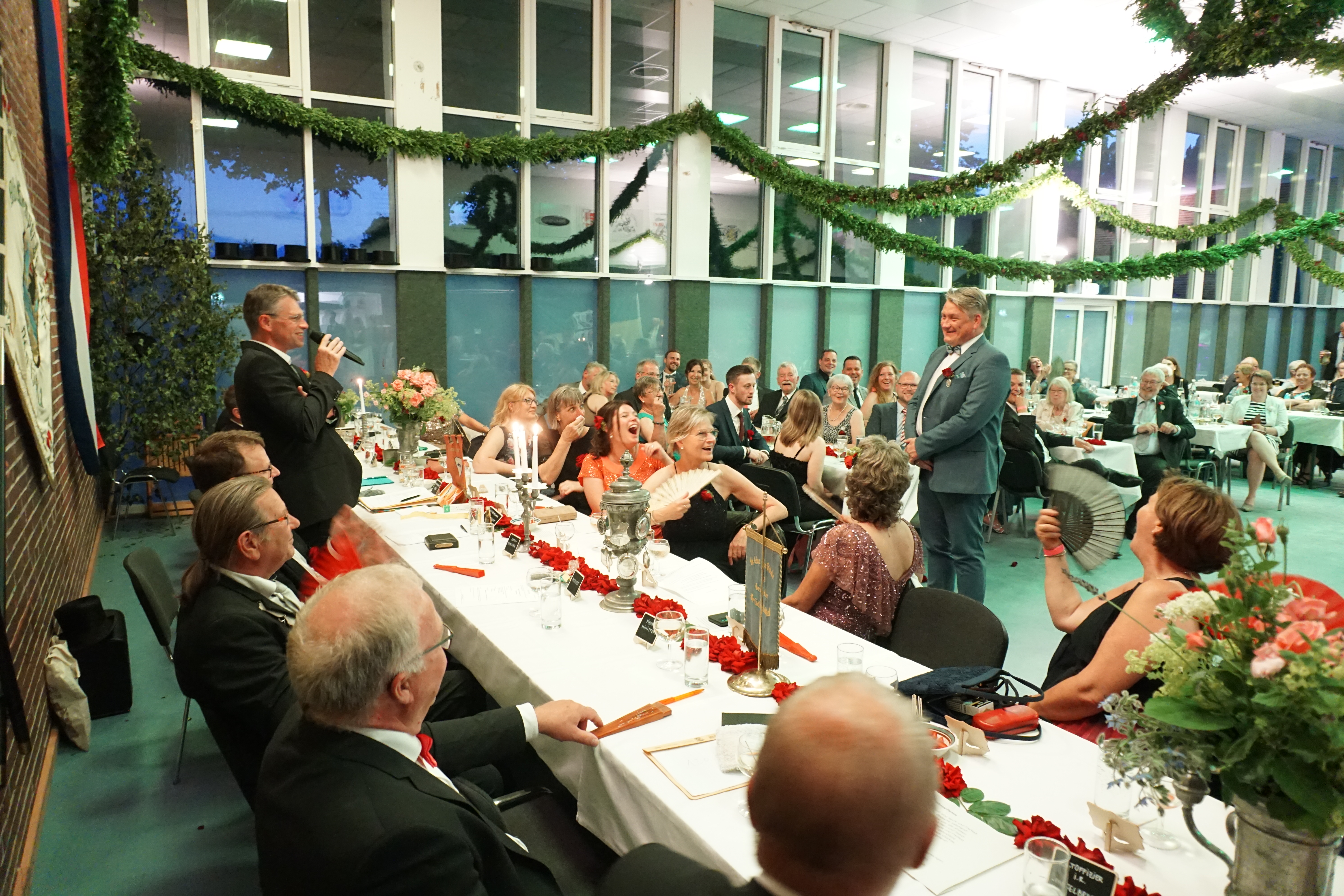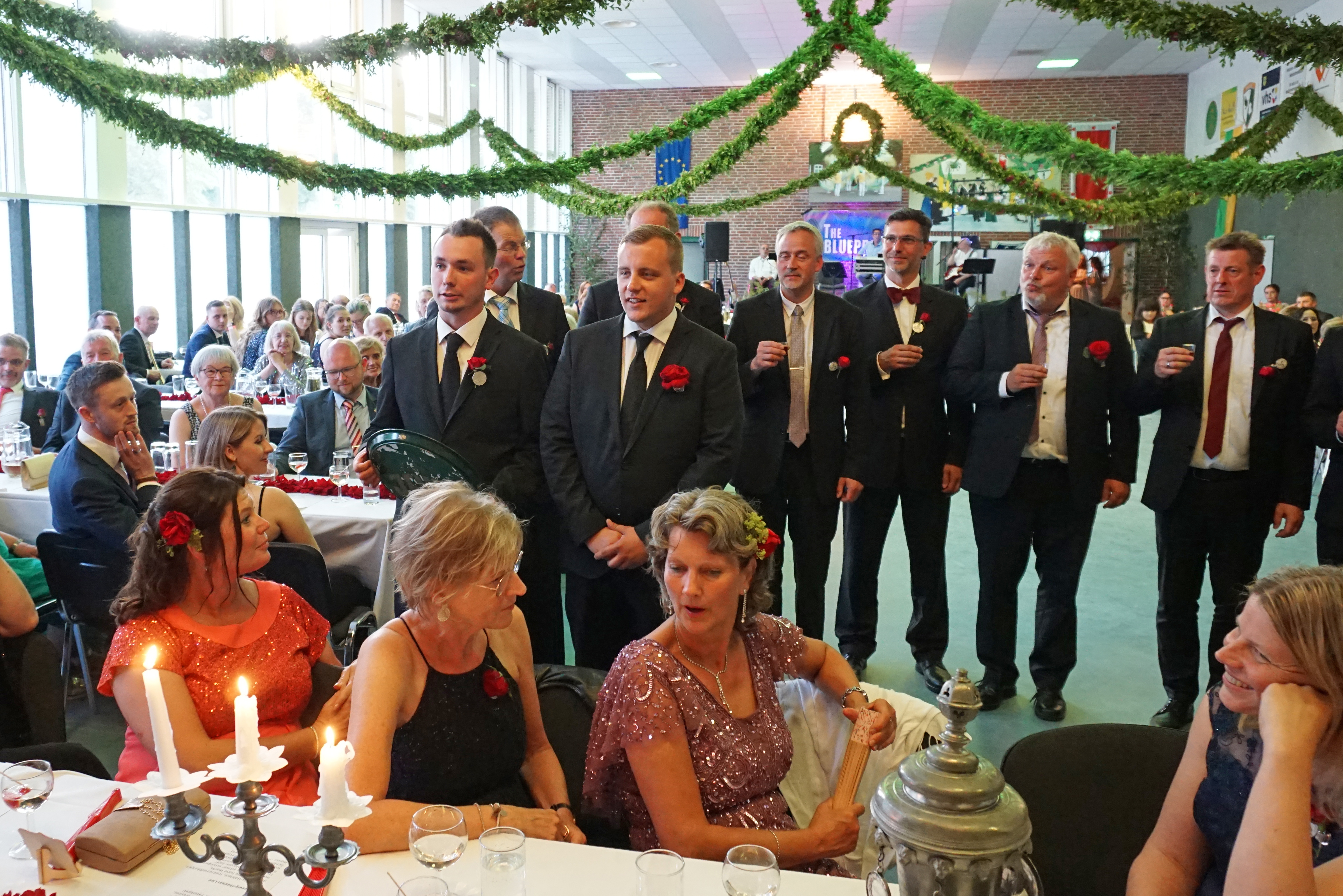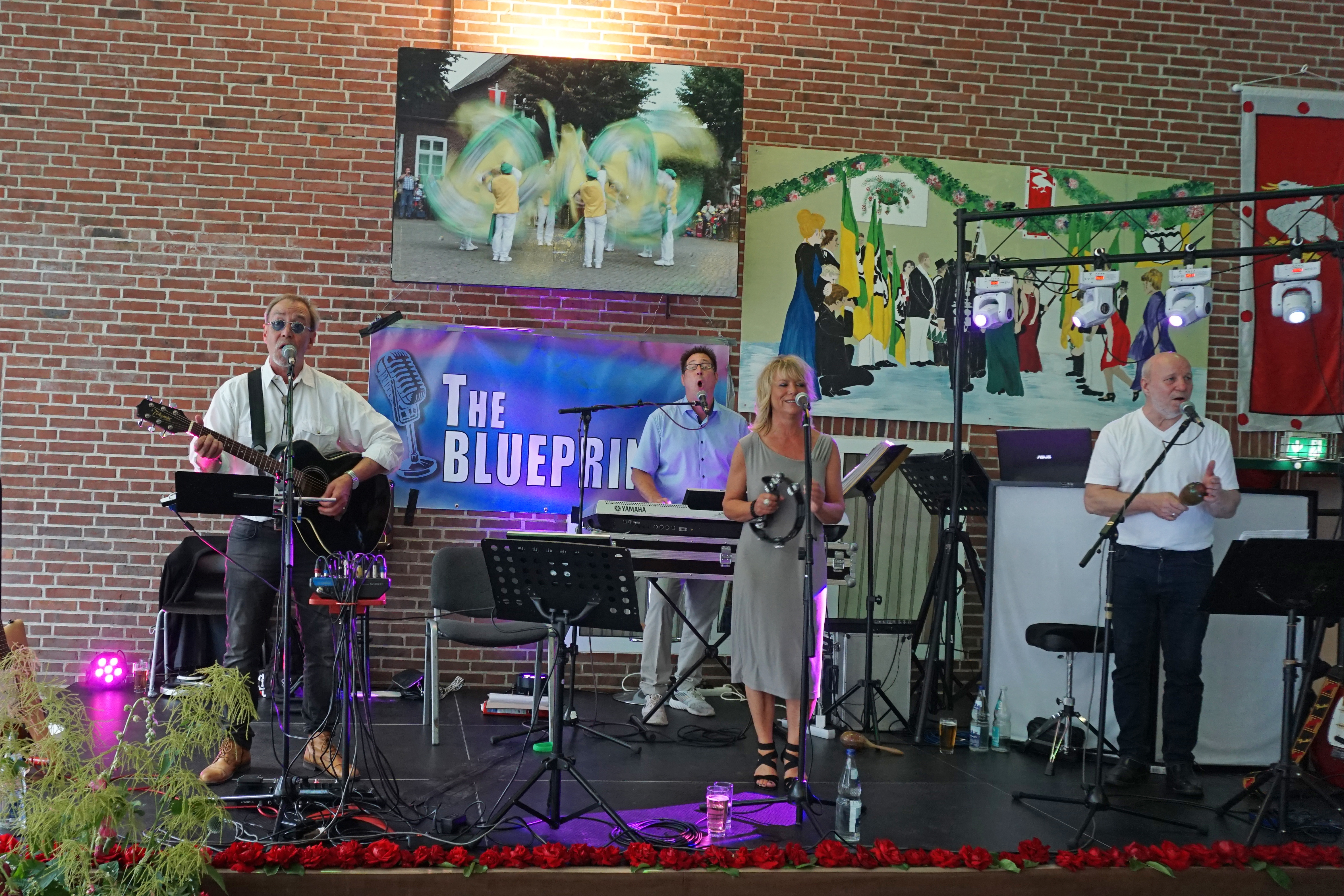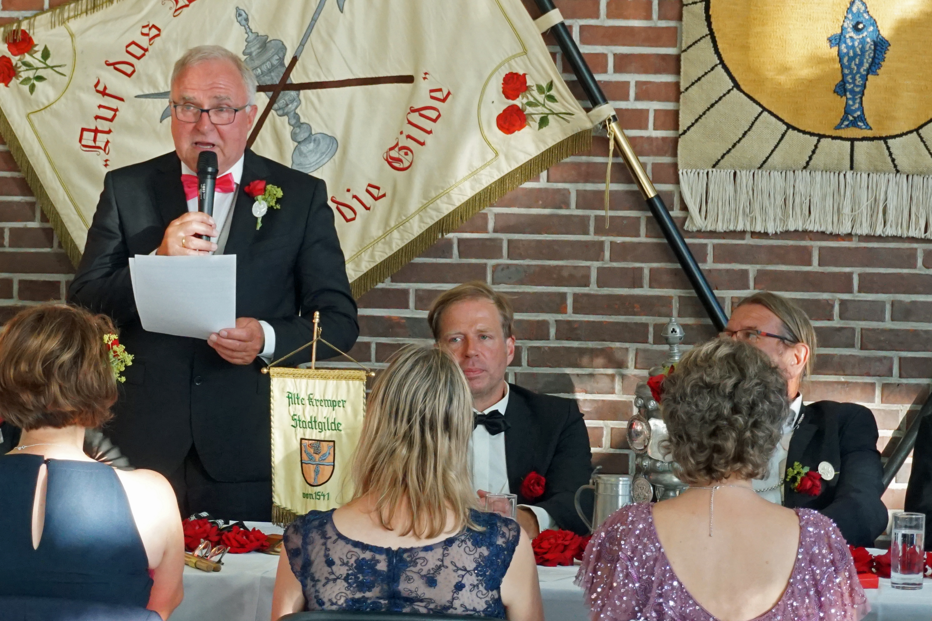 Ab 20:00 Uhr gab es die traditionellen Reden des Bürgermeister, des Ältermanns und des Hauptmanns. Danach konnte zur Musik von „The Blueprints“ wieder das Tanzbein geschwungen werden. Für einige Ehrungen und Bestrafungen wurden die Tänze kurz unterbrochen. Eine Unterbrechung gab es auch, als die Fahnenschwenker, Ordonanz, Adjutant, Zitronenlieferant und Ordonanz mit ihren Damen als „Gildekleber“ die Tanzfläche blockierten😆. Aber die Tamboure konnten die Tanzfläche schnell wieder räumen. Bis weit in die Nacht wurde der Gildeausklang noch gefeiert.