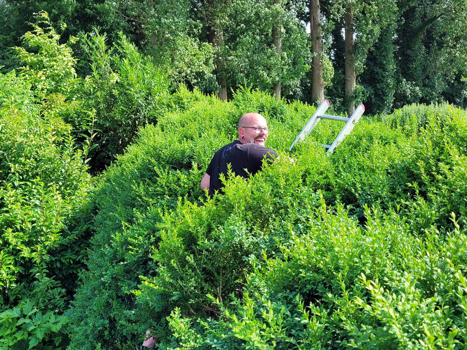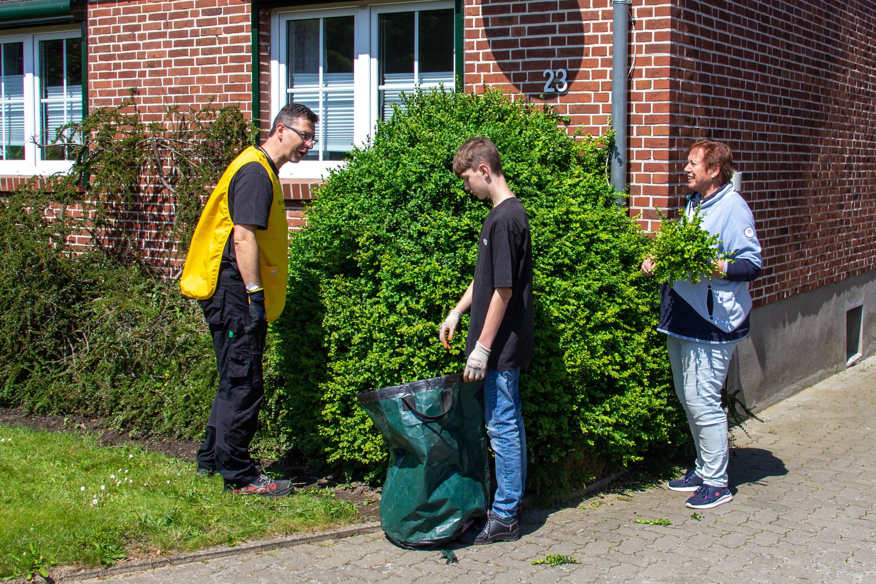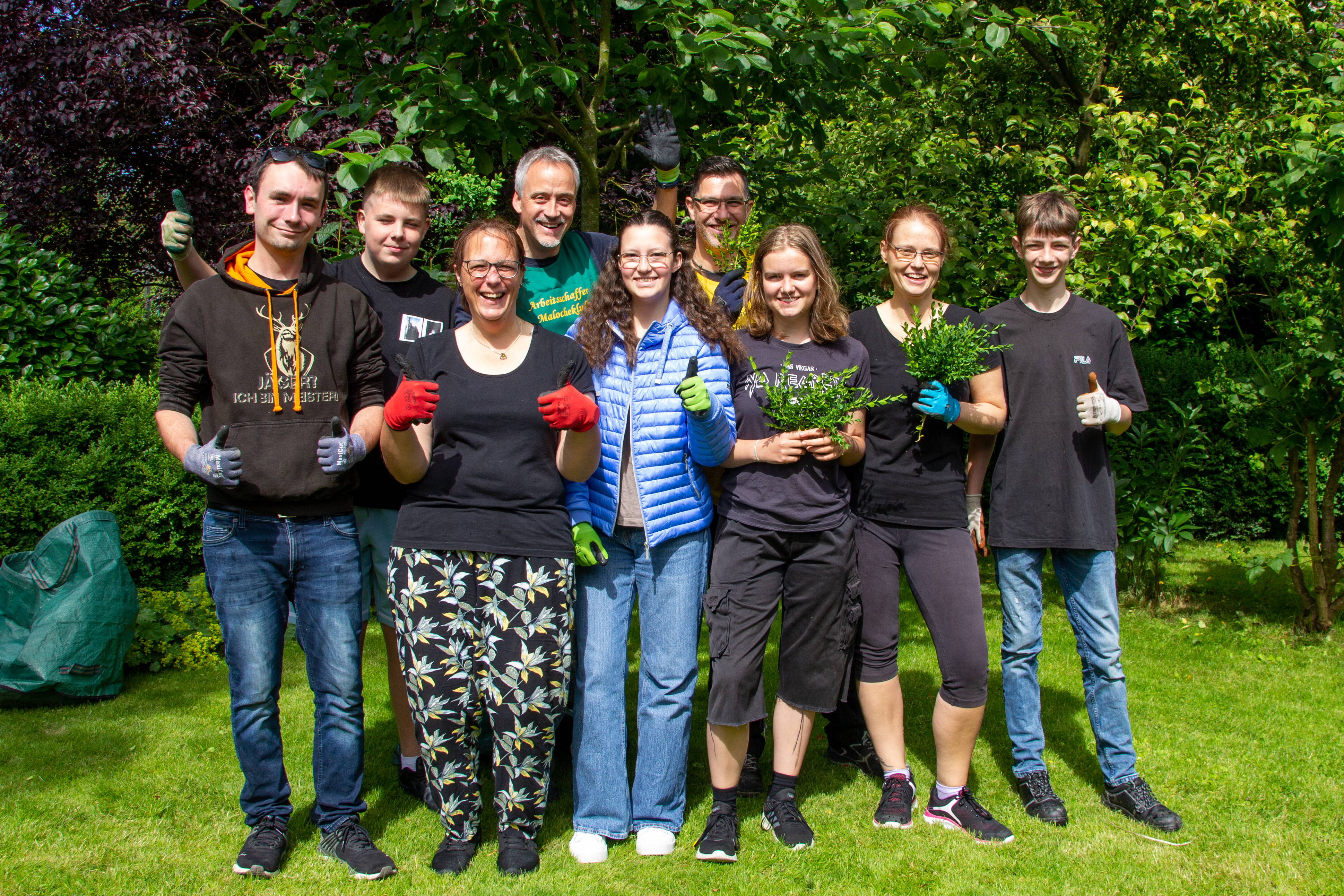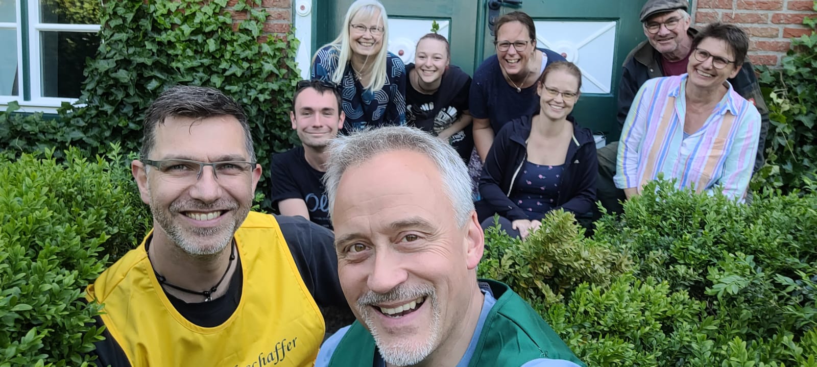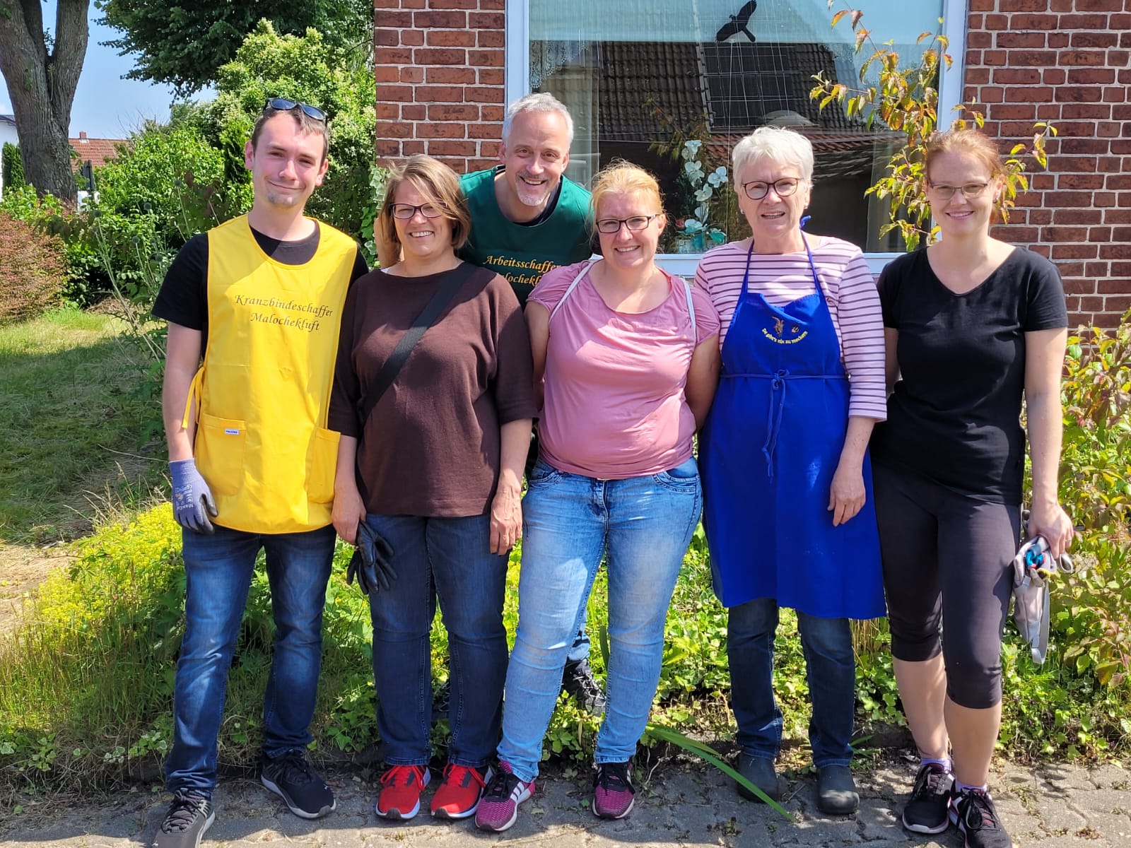 Damit am Dienstag der Gildeball in einem festlichen Ambiente stattfinden kann, binden die Damen des Gildevorstandes mit Gästen am Sonntag vorher die Kränze und die Kronen. Hierfür werden Unmengen an Buchsbaum benötigt, für deren Beschaffung die Jung- und Altschaffer zuständig sind. Also wurde in den letzten Tagen – mit Unterstützung einiger Helfer*innen – kräftig Buchsbaum gebrochen. Dass dies mehr Freude als Arbeit war, ist auf den Fotos ganz klar zu erkennen.