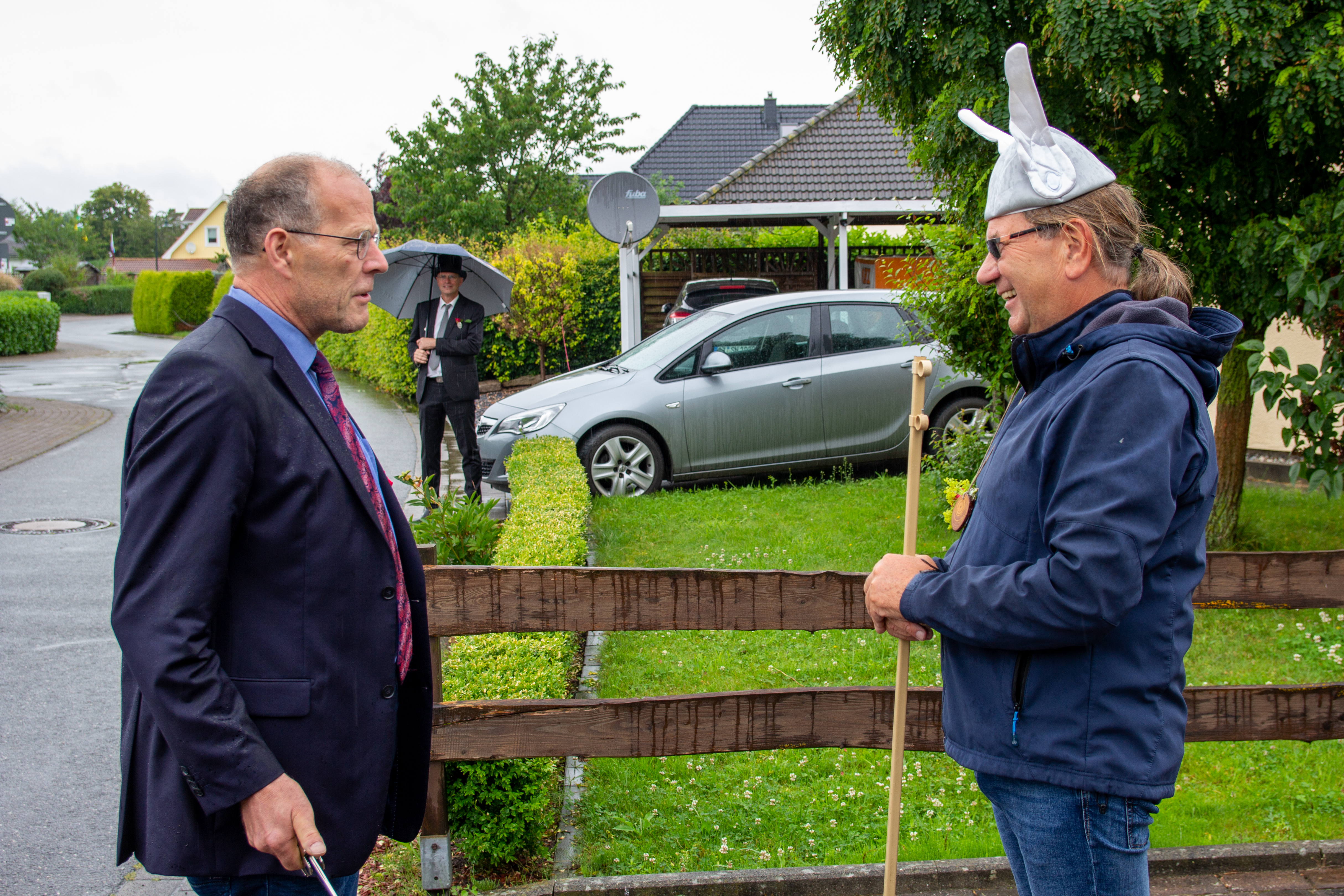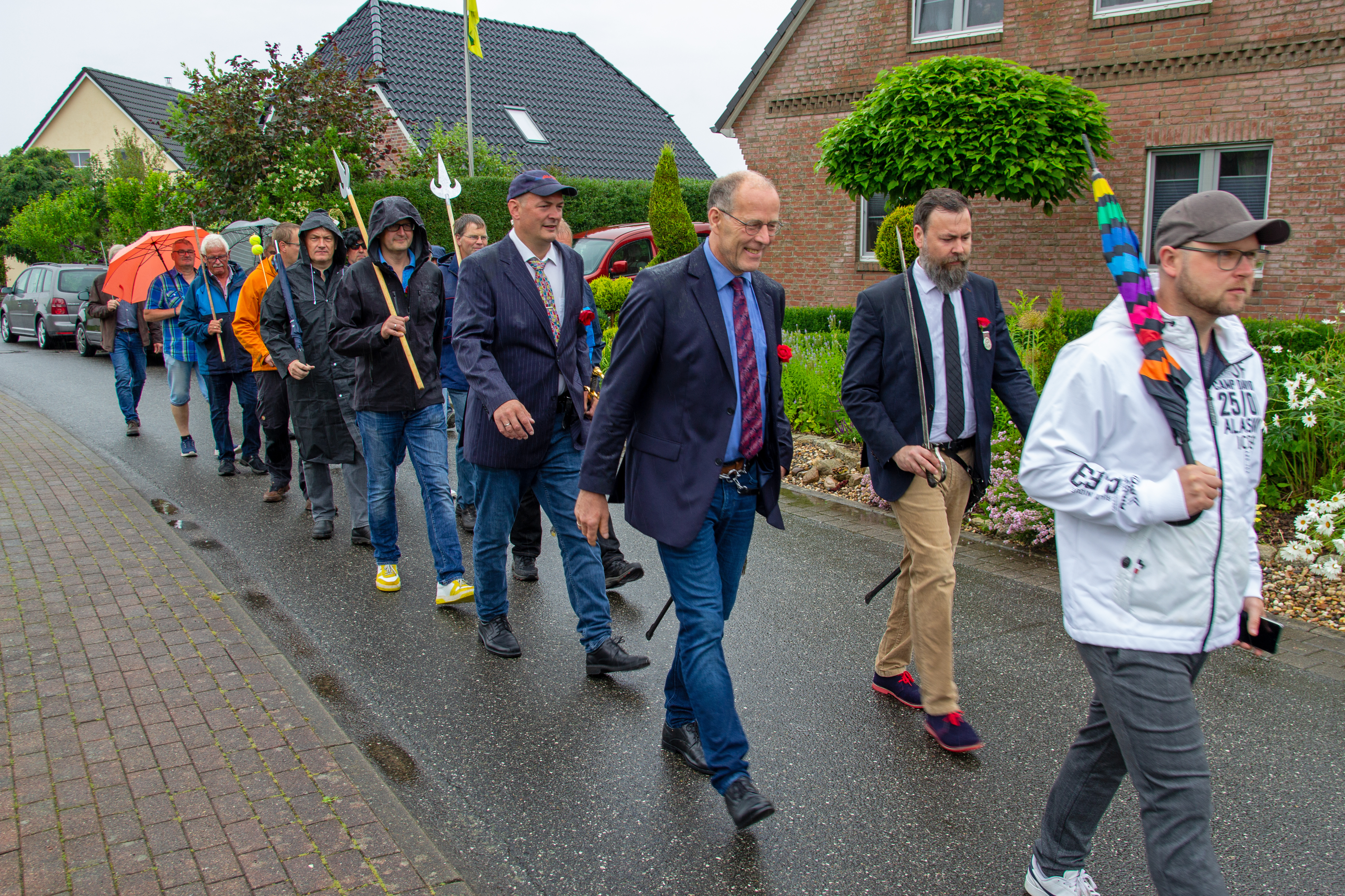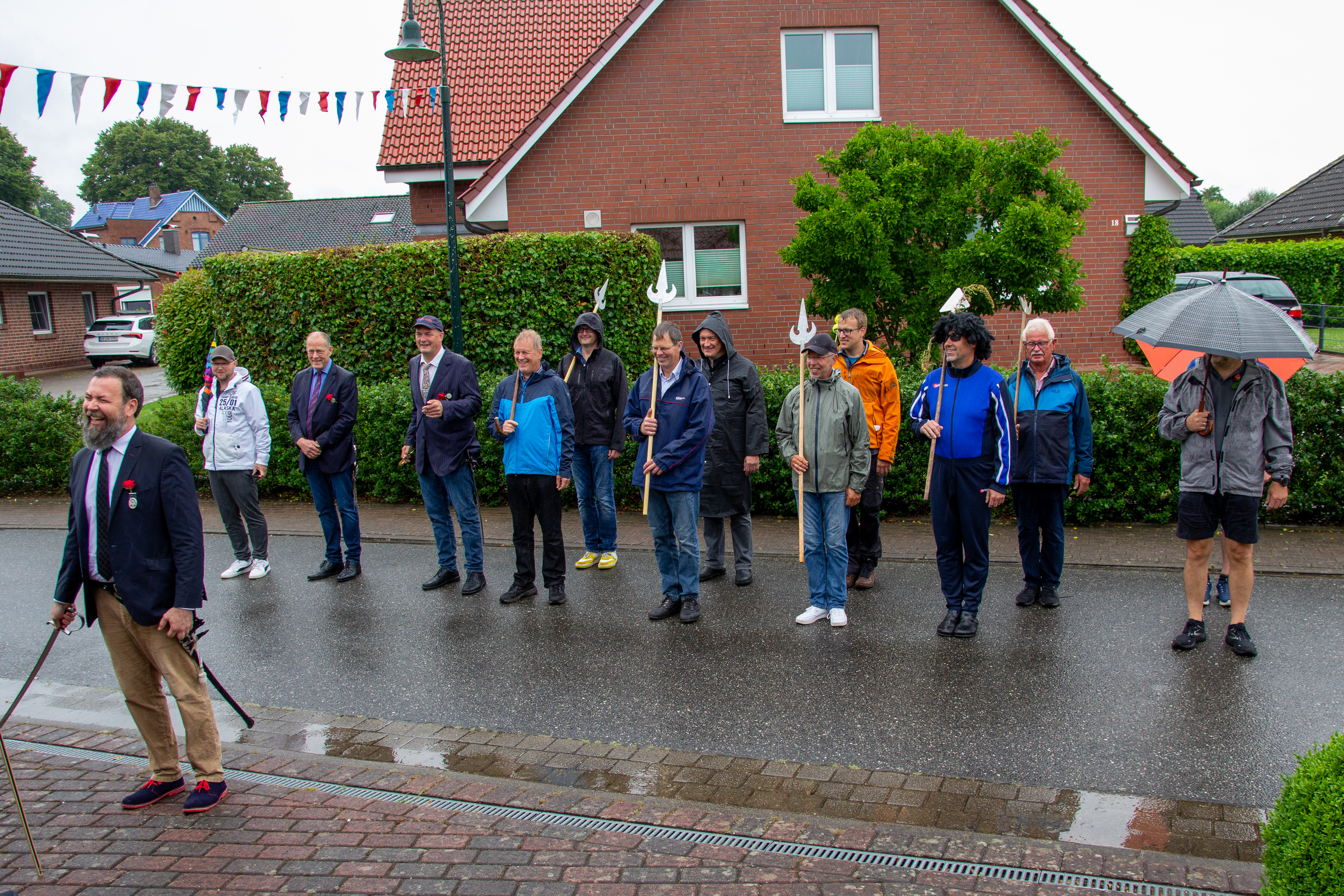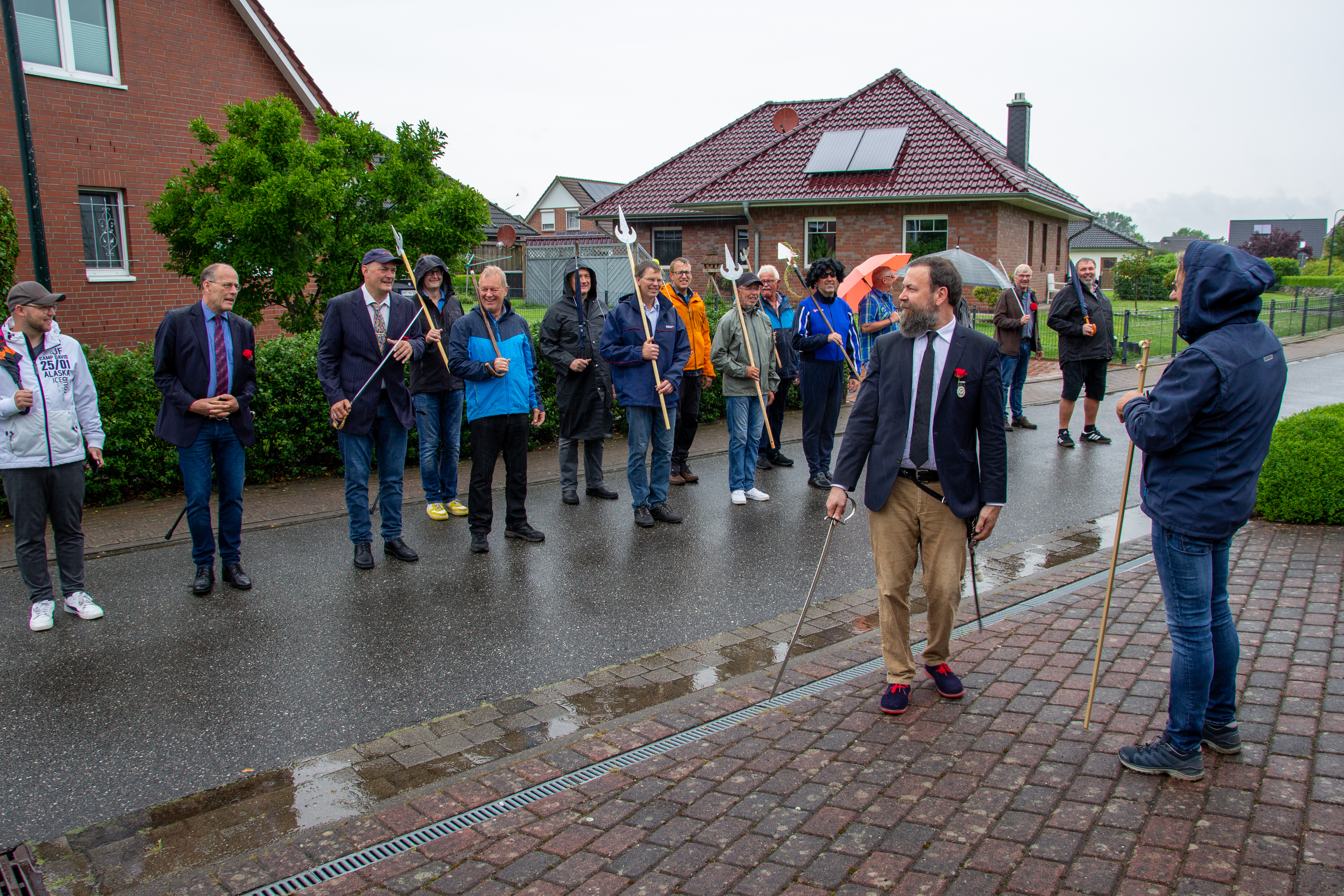 Bei einigen Märschen durch unsere kleine Stadt marschiert der Hauptmann nicht mit. Dann hat einer der Altoffiziere das Kommando. Damit das dann auch klappt, wird am Sonntag nach dem Gildegottesdienst beim Hauptmann noch einmal kräftig geübt.