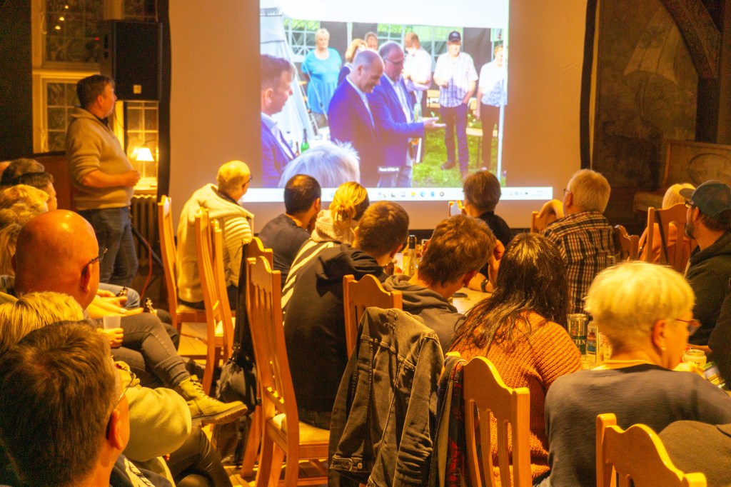 Die Altoffiziere Ahrens und Petrushev luden zum Filmabend der Gilde ein und alle kamen. Im vollbesetzten Rathaussaal präsentierte Altoffizier Ahrens Fotos und Filmausschnitte der vergangenen Jahre. U.a. ein Filmausschnitt aus dem Jahre 1986 begeisterte die Anwesenden.