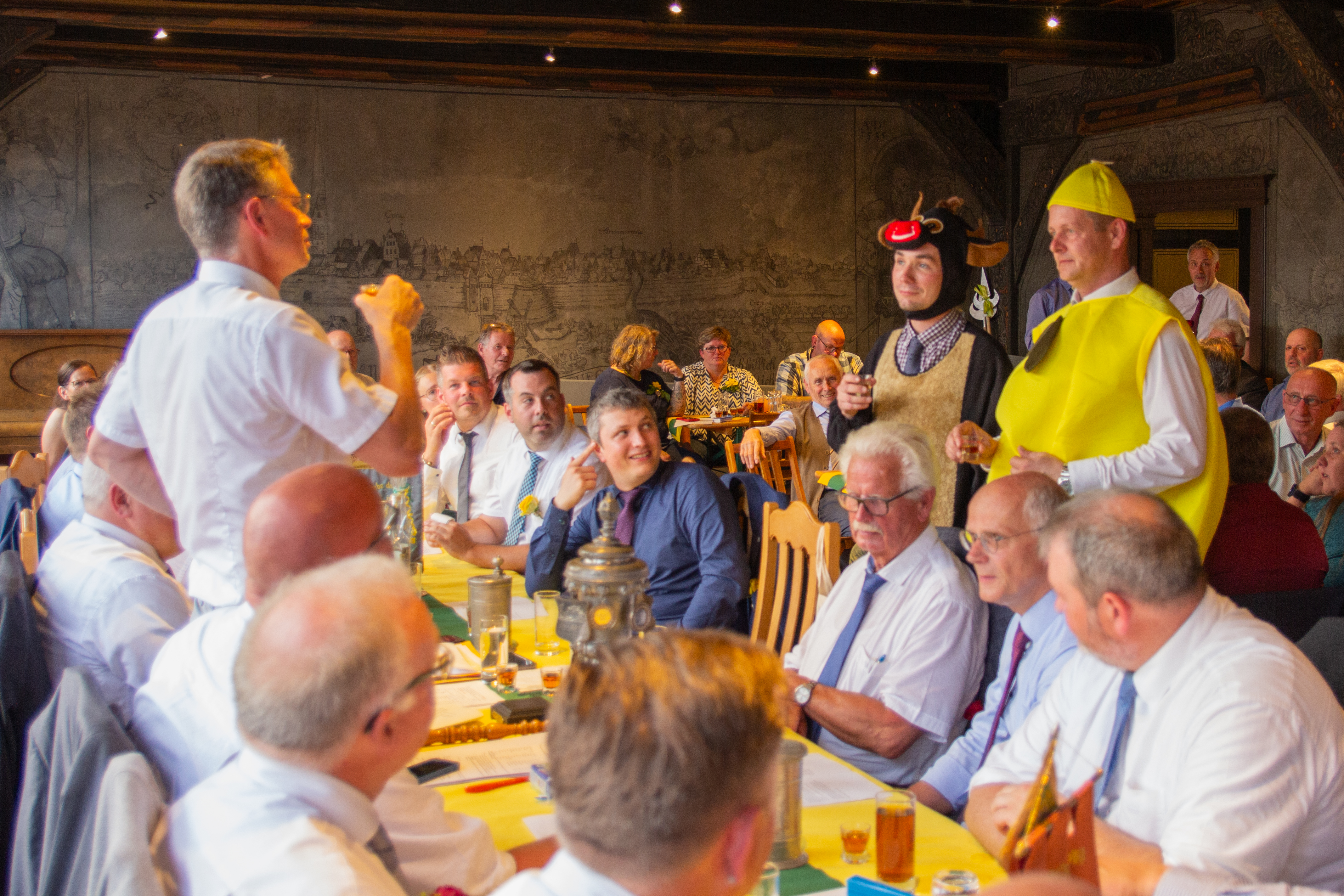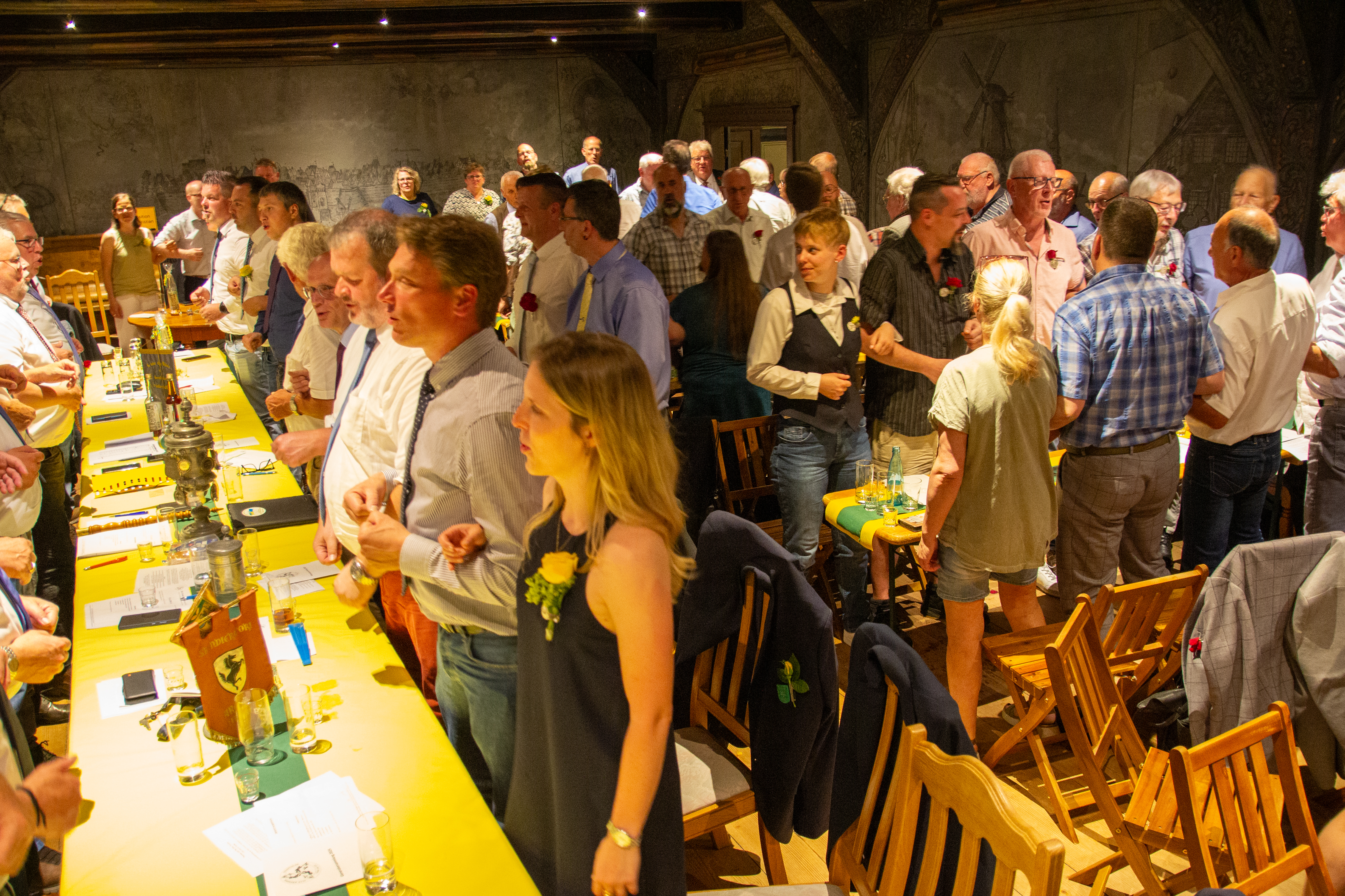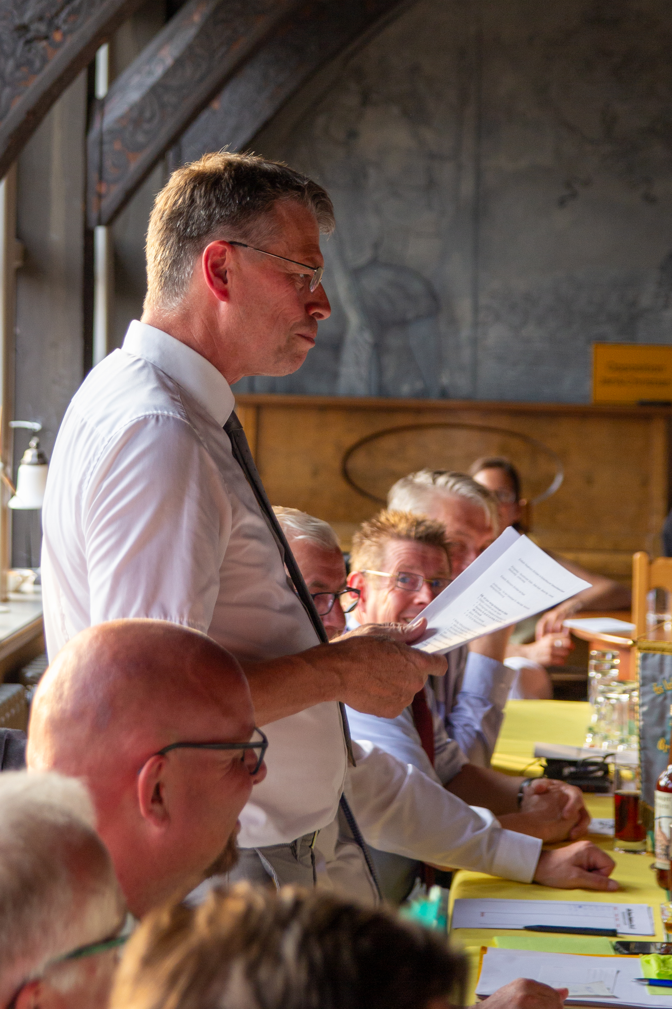 Pünktlich um 20 Uhr eröffnete Ältermann Kai Borchert mit drei Zepterschlägen die Generalversammlung der Alten Kremper Stadtgilde. Mit großer Freude konnte er 74 Gildemitglieder persönlich begrüßen. Der Applaus der Gildeschwestern- und brüder brauste auf, als der Ältermann erklärte, dass die Vierwochenversammlung beschlossen hat, auch im Jahr 2025 das Gildefest feiern zu wollen.