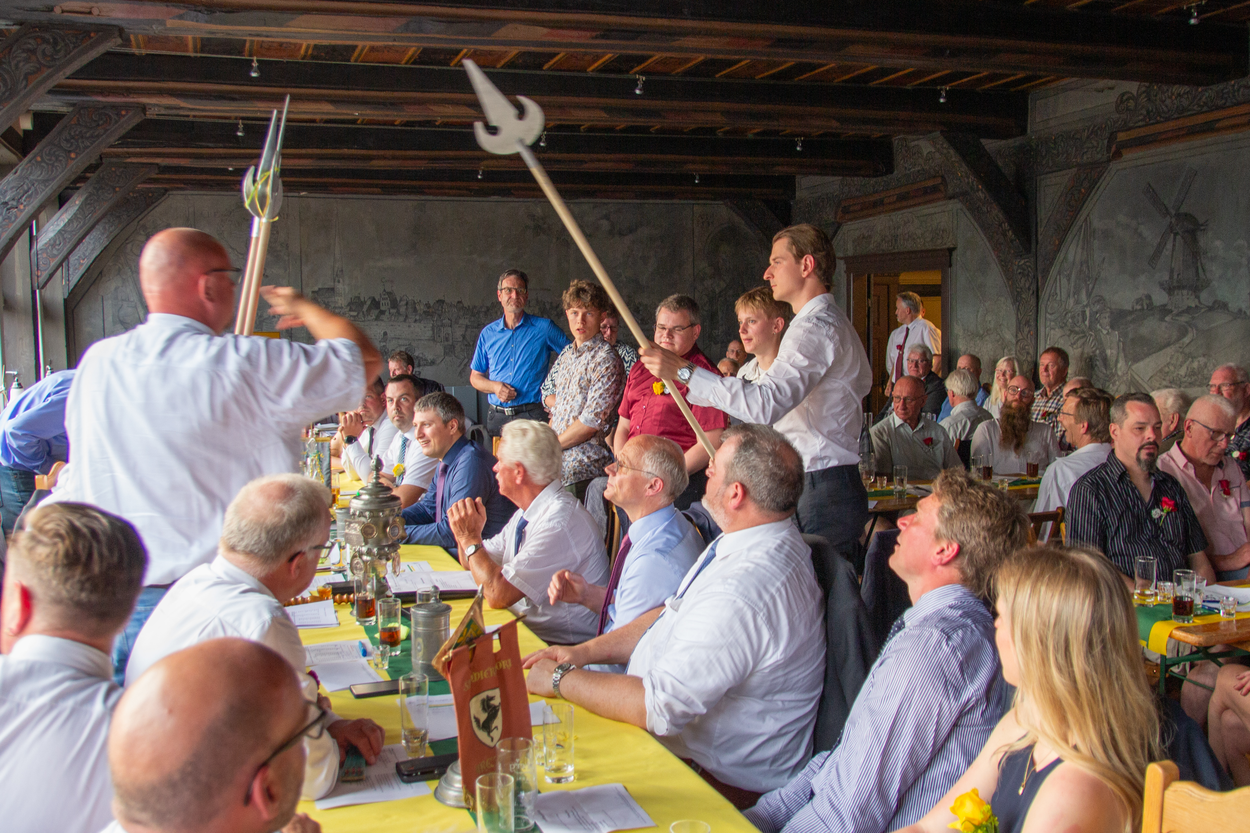 Nachdem die Majestät „Reimer, Der Genießer“ seine Königsplakette dem Ältermann übergeben hatte, überreichte er Spenden an die Fahnenschwenker, an die Jungfahnenschwenker sowie an die Tamboure. Grund hierfür war der stark gestiegene Bedarf an Material, da die Anzahl der Akteure in den letzten Jahren sehr stark gestiegen ist.