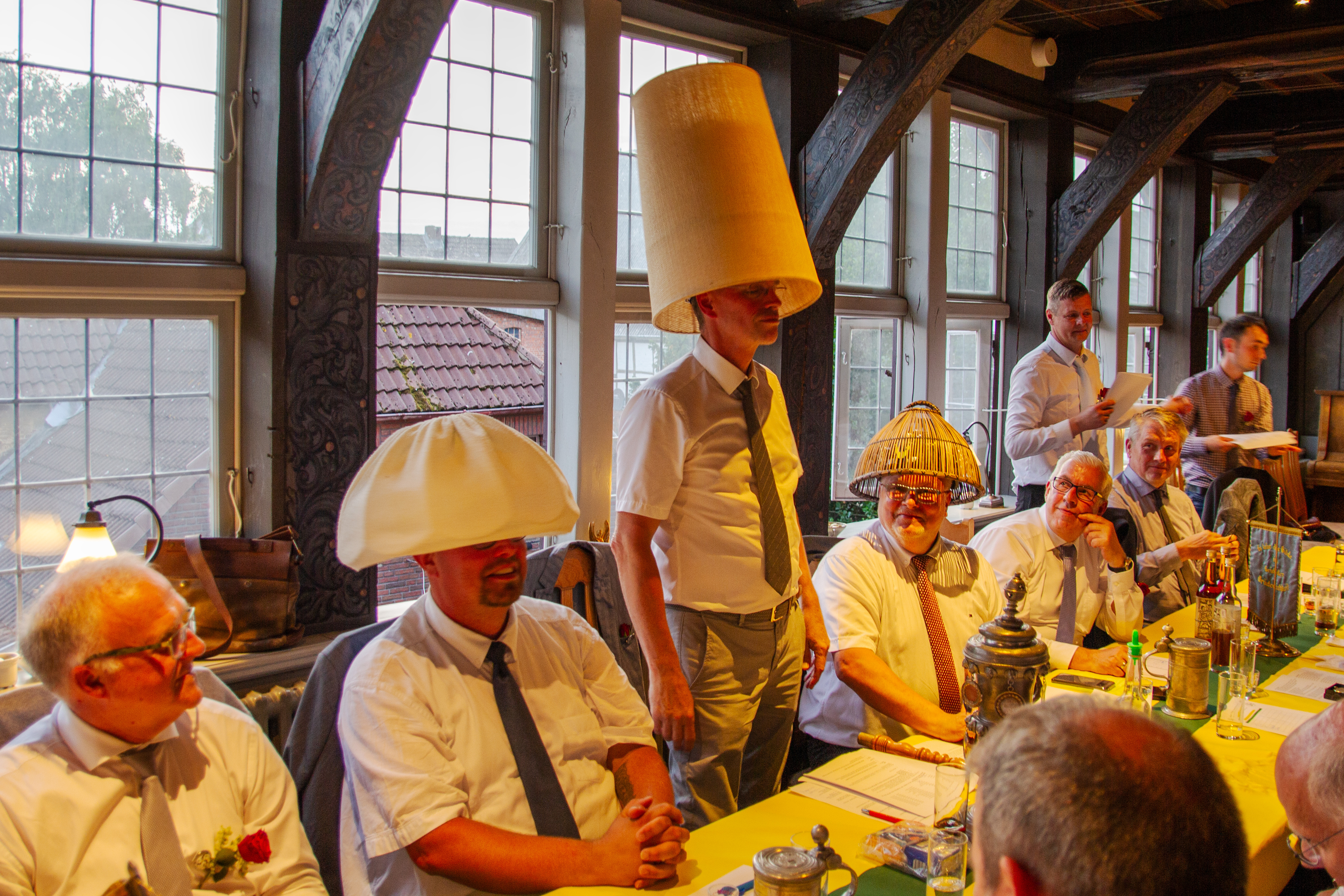 Der Gildeschreiber berichtete, dass seit dem letzten Gildefest 14 neue Mitglieder in die Gilde aufgenommen wurden. Besonders herzlich wurden jene Mitglieder empfangen, die zum ersten Mal an einer Generalversammlung teilnahmen. Ihnen wurde eine besondere Ehre zuteil: Als Willkommensgruß erhielten sie einen eigens vom Fahnenschwenkerobmann Markus Spiegl zubereiteten Kremper Bittern – eine traditionsreiche Geste, die in der Gilde fest verankert ist. Damit sie am Gildemontag auch ausmarschieren können, überreichte Hauptmann Eike Stührwoldt Hellebarden an die neuen Schützen.