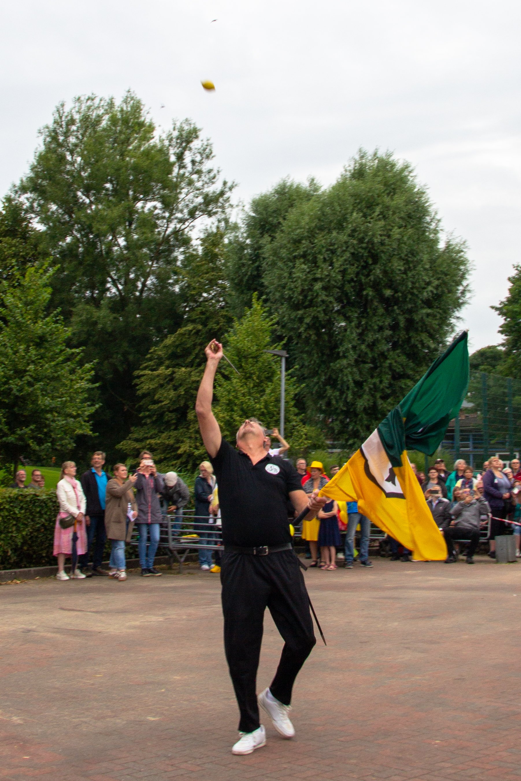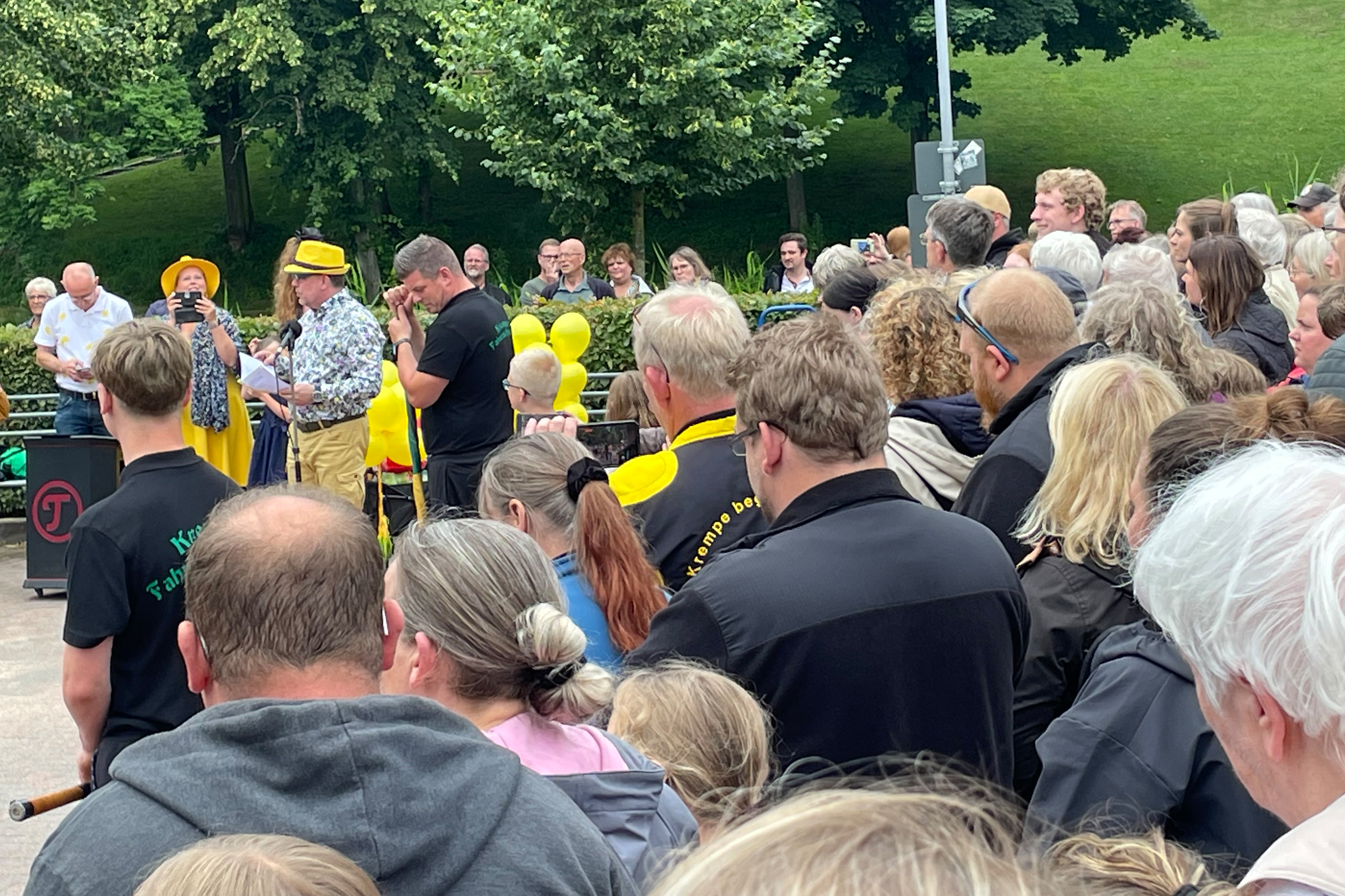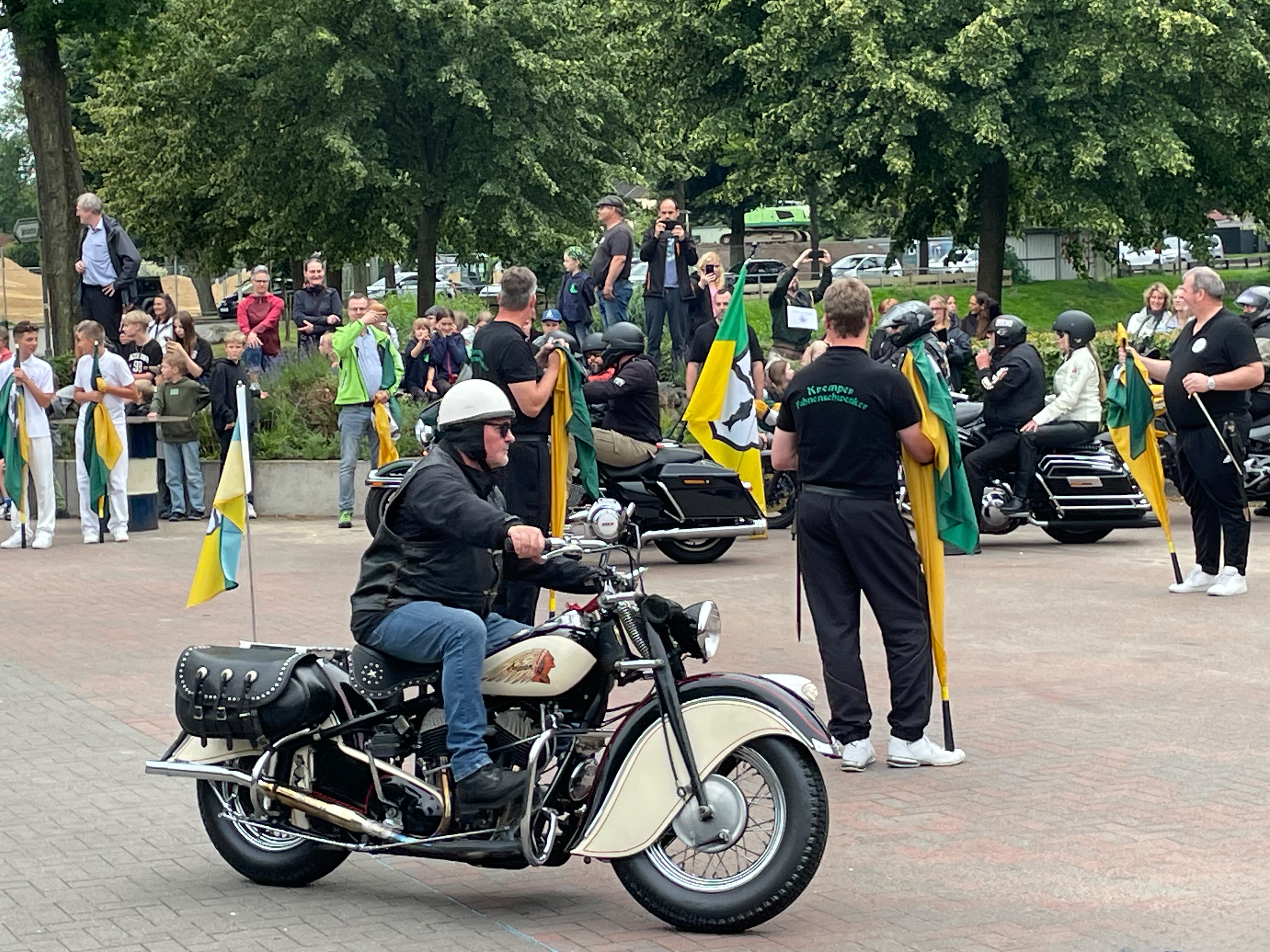 Bei der gut besuchten Zitronenübergabe berichtete Zitronenlieferant Gero Felis in unterhaltsamer Gedichtform von seiner abenteuerlichen Suche nach den besten Zitronen für die Kremper Fahnenschwenker. Ursprünglich hatte er sich auf eine weltweite Reise begeben – doch zahlreiche Hindernisse zwangen ihn schließlich dazu, die Früchte kurzerhand in einem örtlichen Markt zu besorgen. Damit sie dennoch rechtzeitig zur Übergabe eintrafen, ließ er sich per Motorradkorso eskortieren.