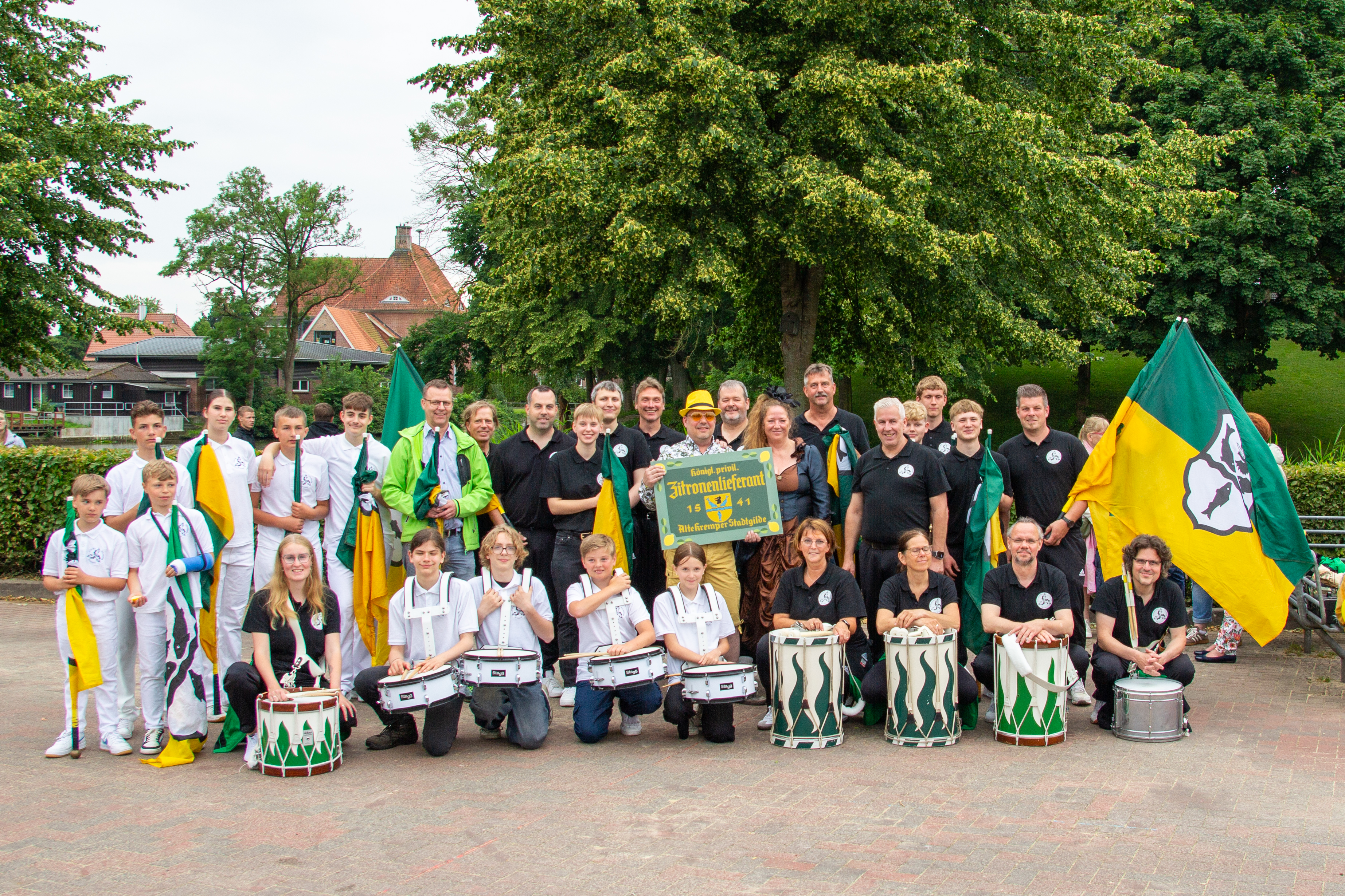 Die Fahnenschwenker unterzogen die Zitronen einem erfolgreichen „Säbeltest“ und feierten anschließend noch einige vergnügliche Stunden mit den zahlreichen Gästen. Für eine tolle Stimmung sorgte dabei die bestens aufgelegte Kremper Stadtkapelle.