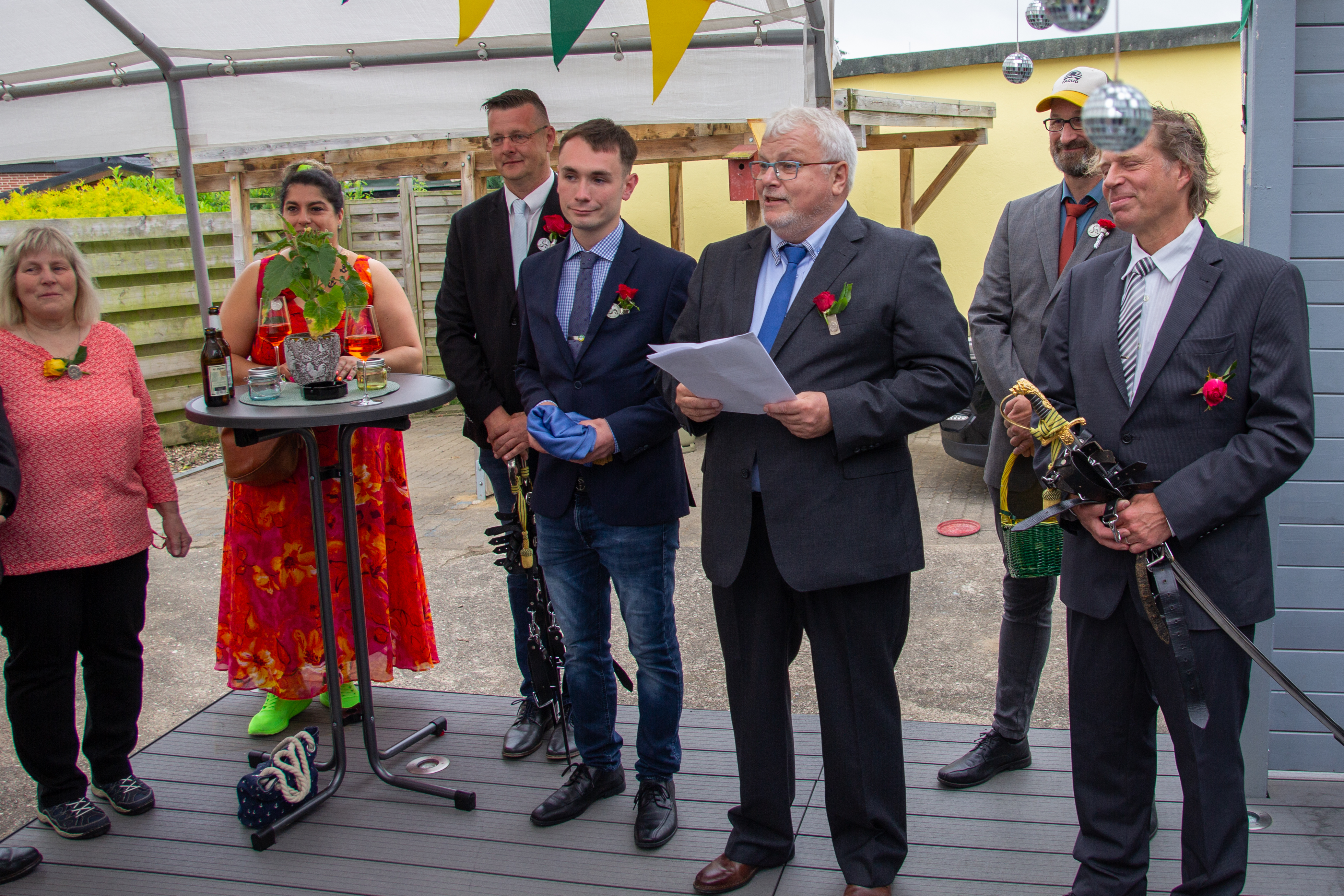 Als Zeichen von Würde und Verantwortung wurden vor den öffentlichen Gildefeierlichkeiten dem Hauptmann Eike Stührwoldt sowie den Altoffizieren Zlatko Petrushev und Joachim Ahrens feierlich Schärpen und Säbel überreicht. Mit dieser symbolträchtigen Geste würdigt die Gilde ihren Einsatz und ihre besondere Stellung innerhalb der Gilde.