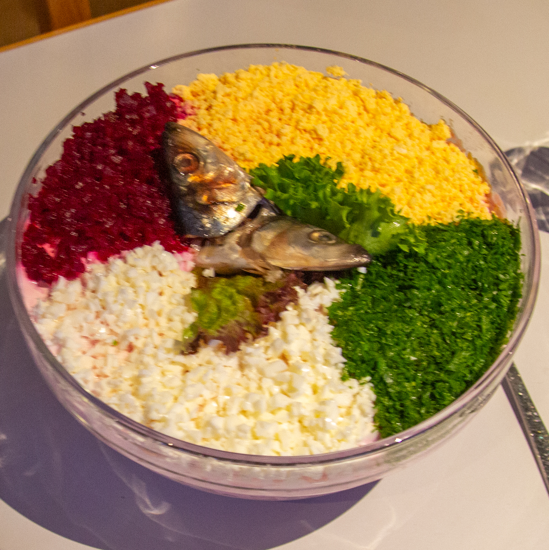 Nach dem offiziellen Teil ging es – wie seit Jahrzehnten üblich – über zum Heringssalatessen. Dabei gibt es eine ganz besondere Aufgabe für die neuen Jungschaffer: Sie müssen die Heringsköpfe, die auf den Salatschüsseln liegen, einsammeln und daraus den traditionellen Kremper Bittern herstellen. Zum Einsatz kam dabei die eigens konstruierte „Heringskopfverwertungsmaschine“ (HKVM) – ein echtes Unikat, das mit viel Humor und Kreativität zum Einsatz kam.