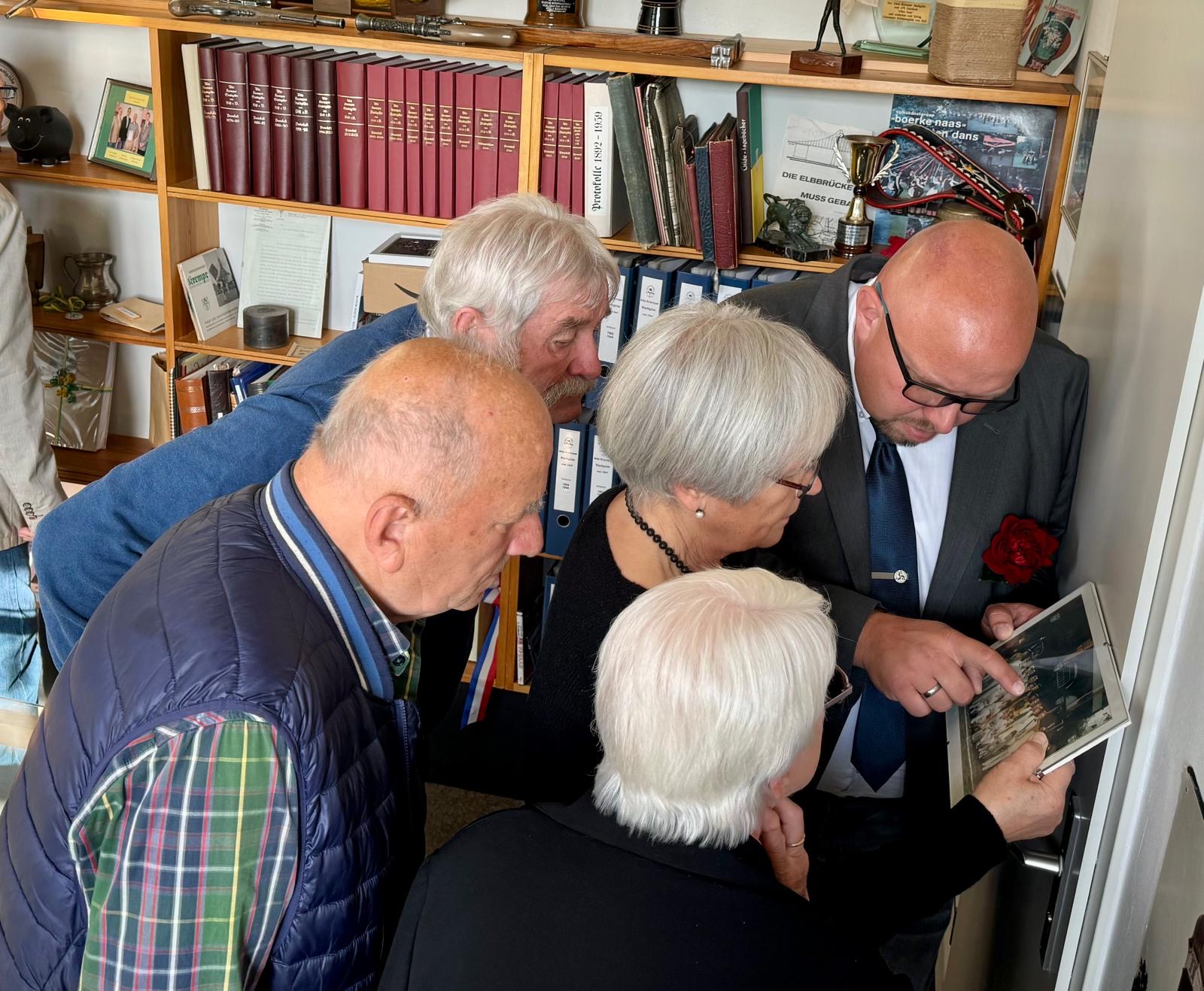 Im Anschluss führte der Weg in das Gildearchiv, das ebenfalls im Haus der Krempermarsch untergebracht ist. Dort bot sich Gelegenheit, in alten Dokumenten und Erinnerungsstücken zu stöbern und spannende Einblicke in die Geschichte der Alten Kremper Stadtgilde zu gewinnen.