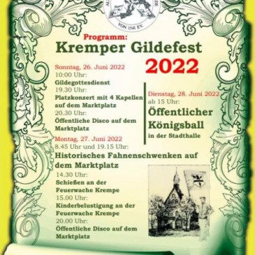 Nachfolgendes aus der Norddeutschen Rundschau: „ALTE KREMPER STADTGILDETraditionelles Gildefest wäre ein Traum – aber es gibt auch einen Plan B Die Entscheidung, ob ein traditionelles Fest in Krempe möglich ist, soll am 14. Mai fallen. Die Fahnenschwenker gehören aber auch bei Plan B zum Programm. shz.devon Sönke Rother April 2022, 11:24 Uhr KREMPE | Eines … Mehr Aus der Presse…neues zur Gilde 2022
