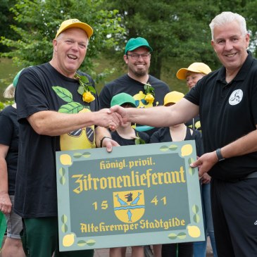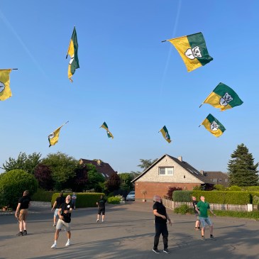 Damit die Kommandos am Montag und Dienstag auch klappen, werden die Altoffiziere am Sonntag nach dem Gildegottesdienst vom Hauptmann eingewiesen. Hierzu finden sich Altoffiziere in Ruhe beim Hauptmann ein, damit die Kommandierenden ihre Befehle entsprechend üben können. Auch wenn nicht alle Kommandos auf Anhieb klappten, hatten Alle viel Spaß.